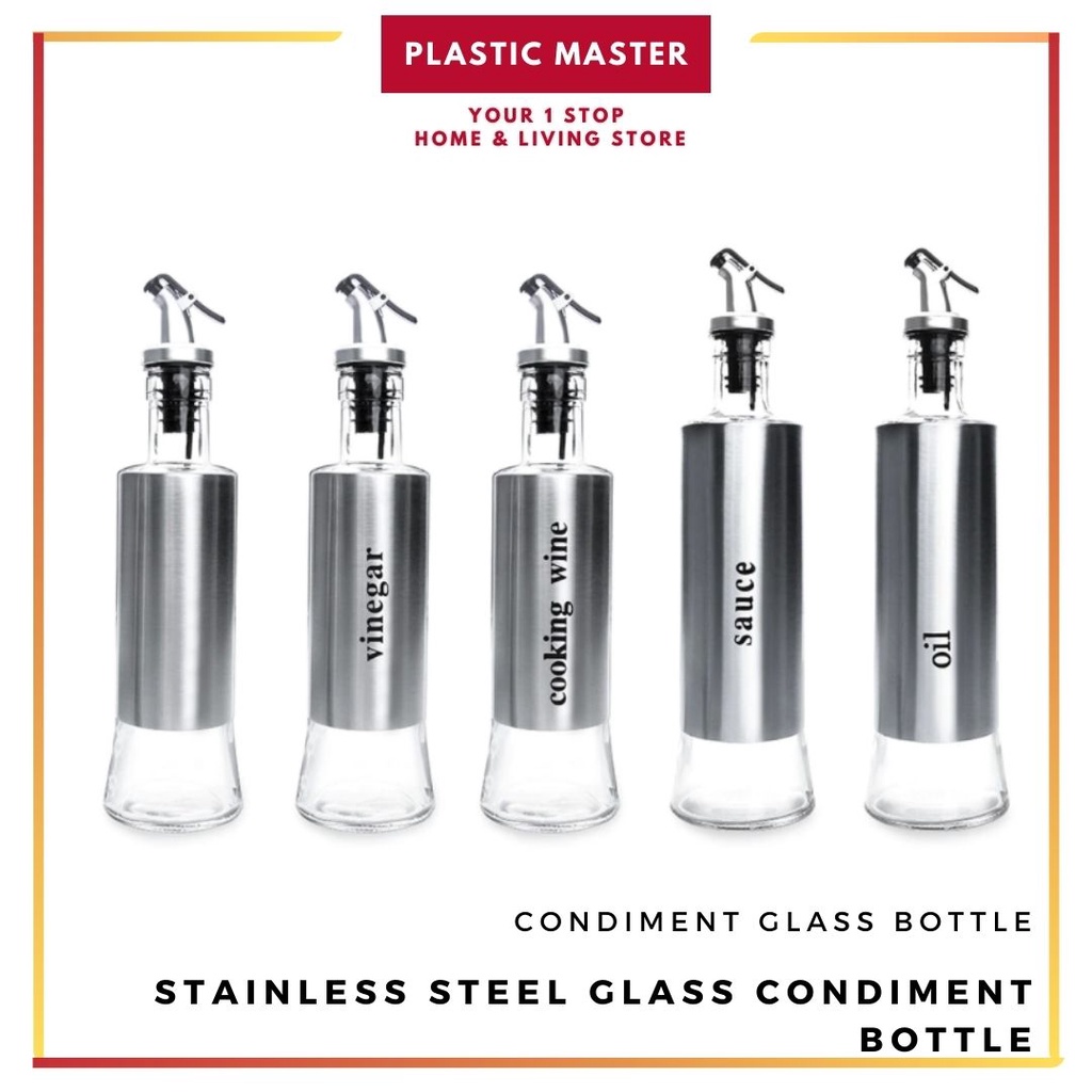 Kitchen Oil Glass Bottle Storage Control Oil Output Stainless Steel Leak-proof Seasoning Glass Bottle