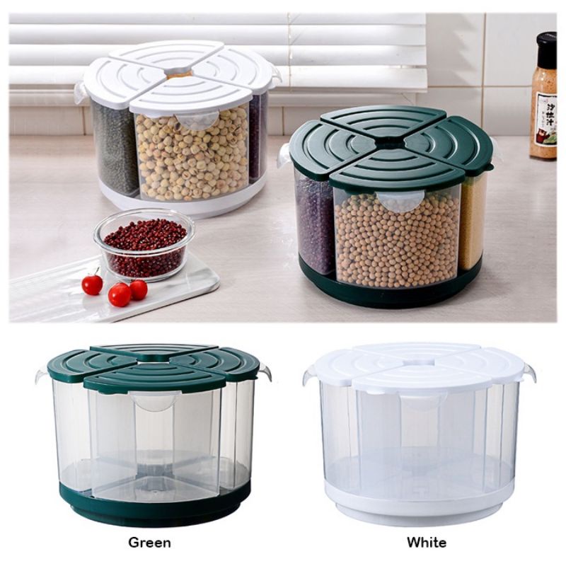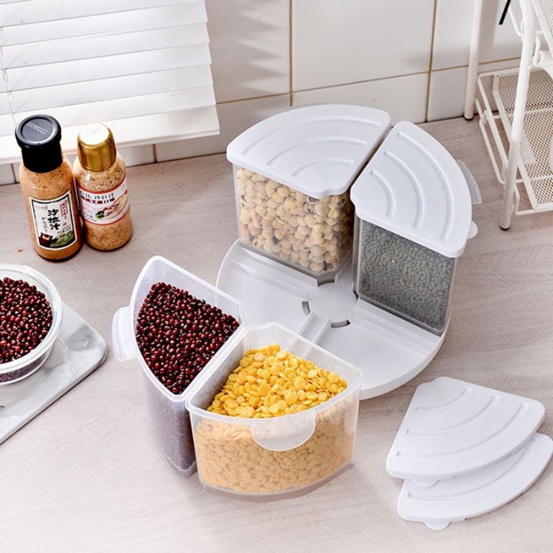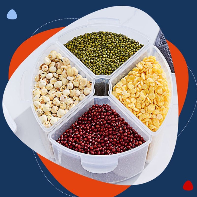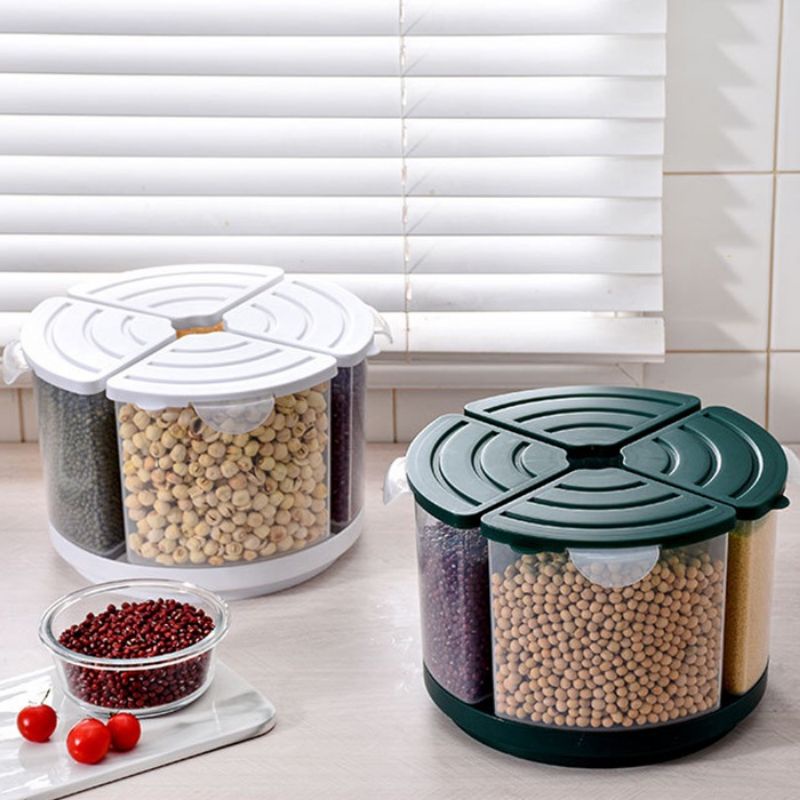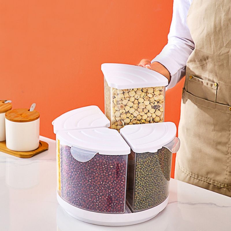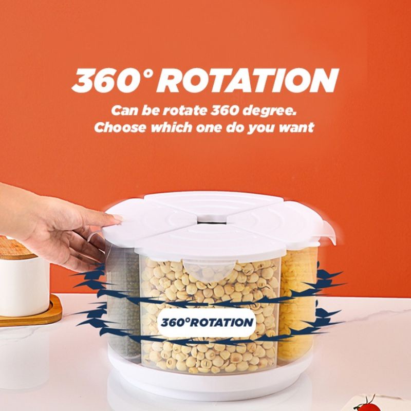 Kitchen Rotary Quadrant Sealed Food-Grade Transparent Grain Tank food tank bekas beras bekas makanan storage box HM507