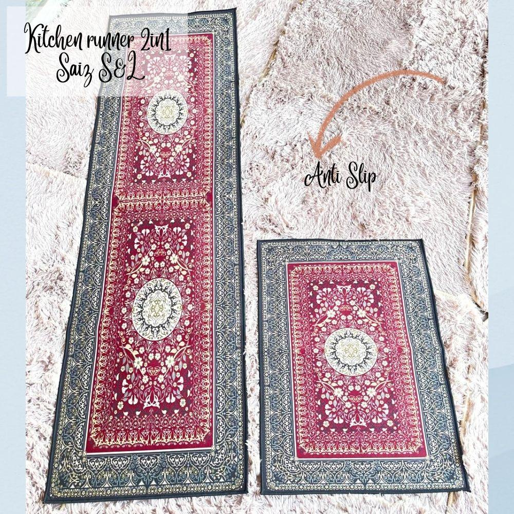 Kitchen Runner Alas Kaki SET 2in1 SAIZ M & SAIZ S DAN SAIZ L & SAIZ S Printed Moden dapur pelbagai design