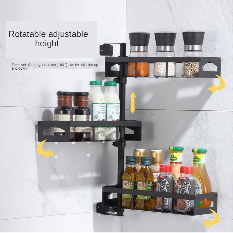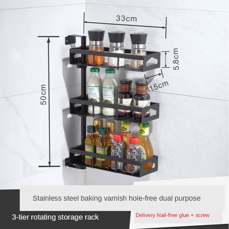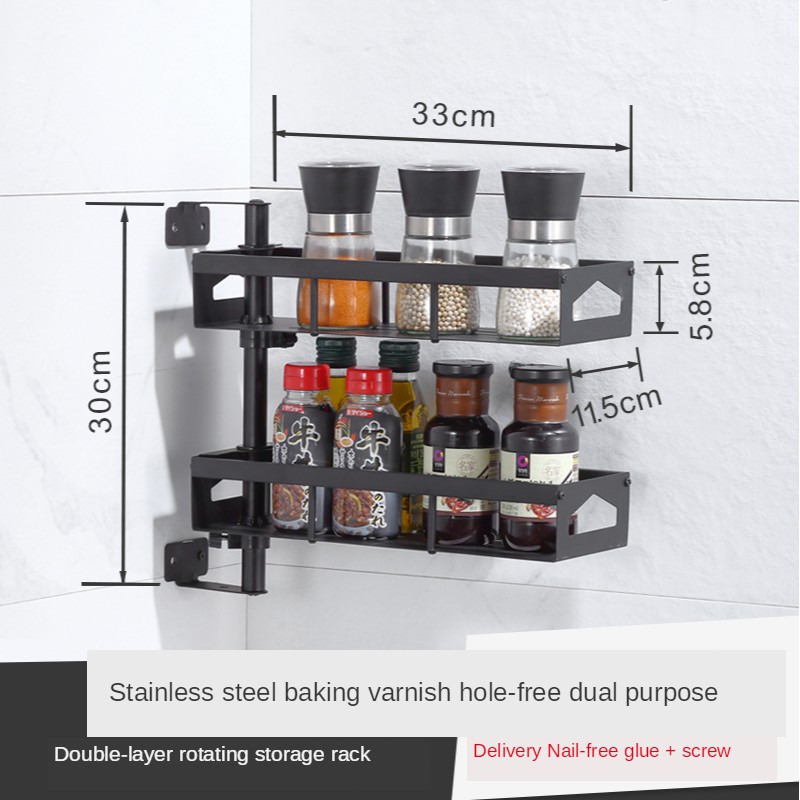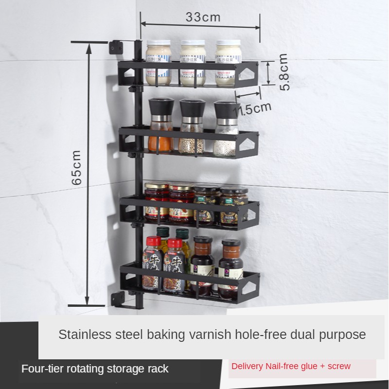 Kitchen Spice Rack Wall-mounted Seasoning Organizer Rotating Spice Rack 304 Stainless Steel Multifunctional Spice Rack