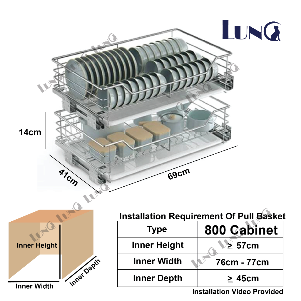Kitchen Storage Chrome Plating Cabinet Dish and Bowl Shelves Rack Sliding Plate Rack Drawer Pull Out Basket