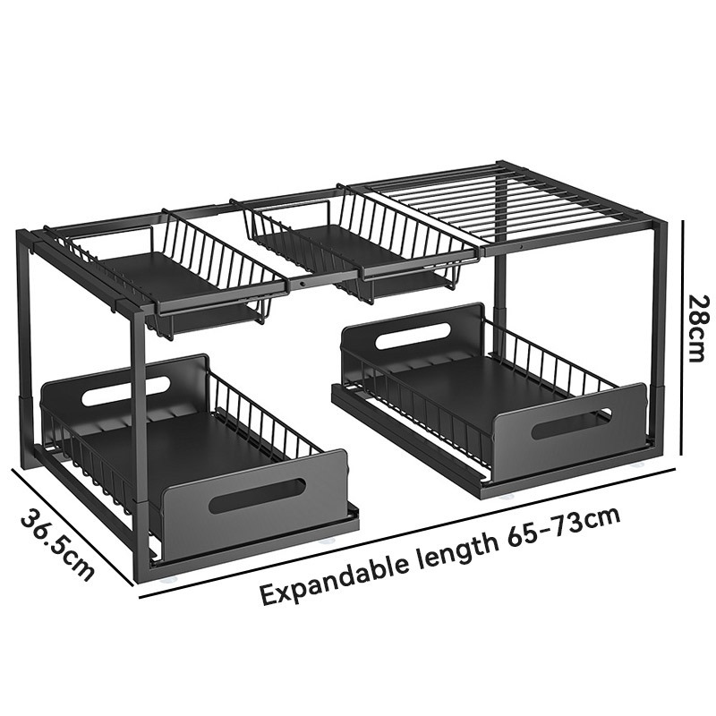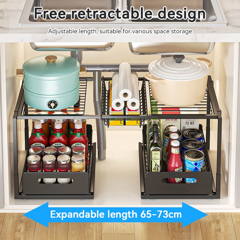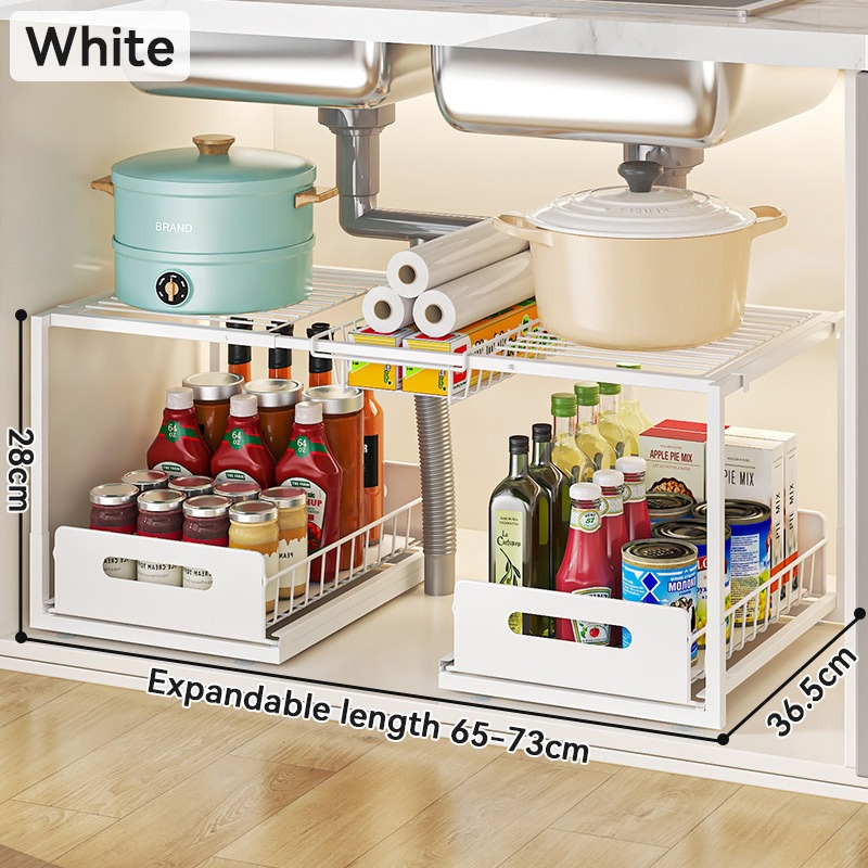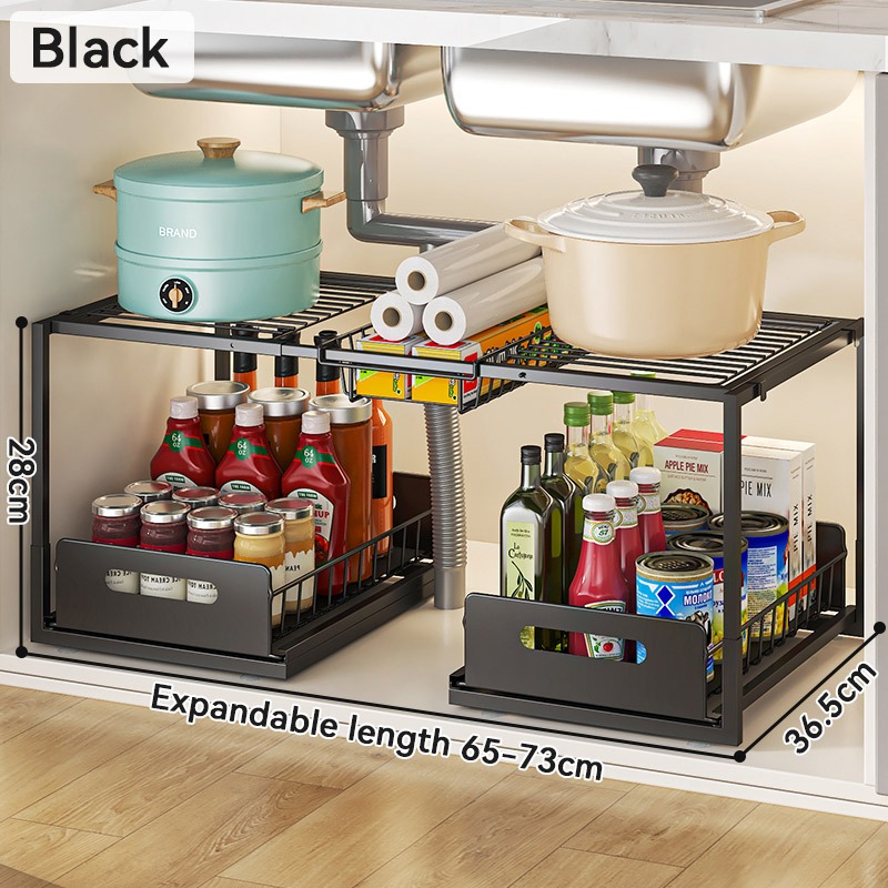 Kitchen Under Sink Shelf Split Level Multi-Functional Spice Rack Pull-Out Storage Rak