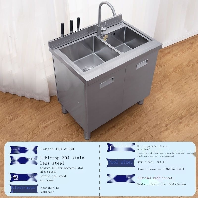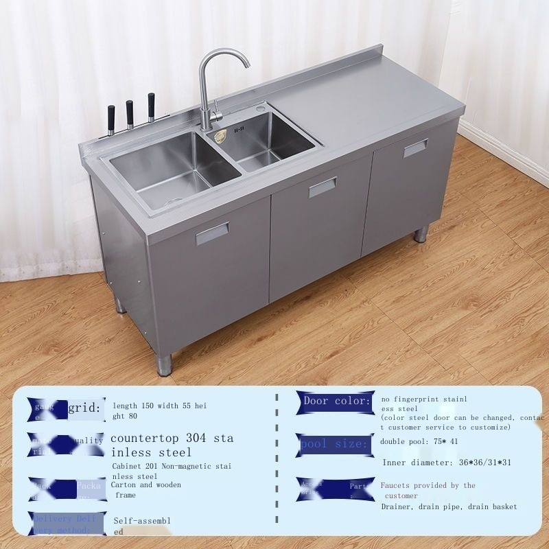 Kitchen stainless steel 304 countertop workbench stove sink storage console vegetable cutting table household cabinet