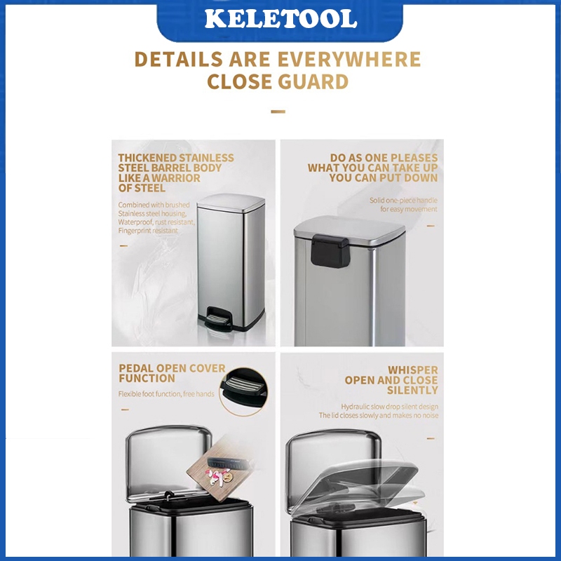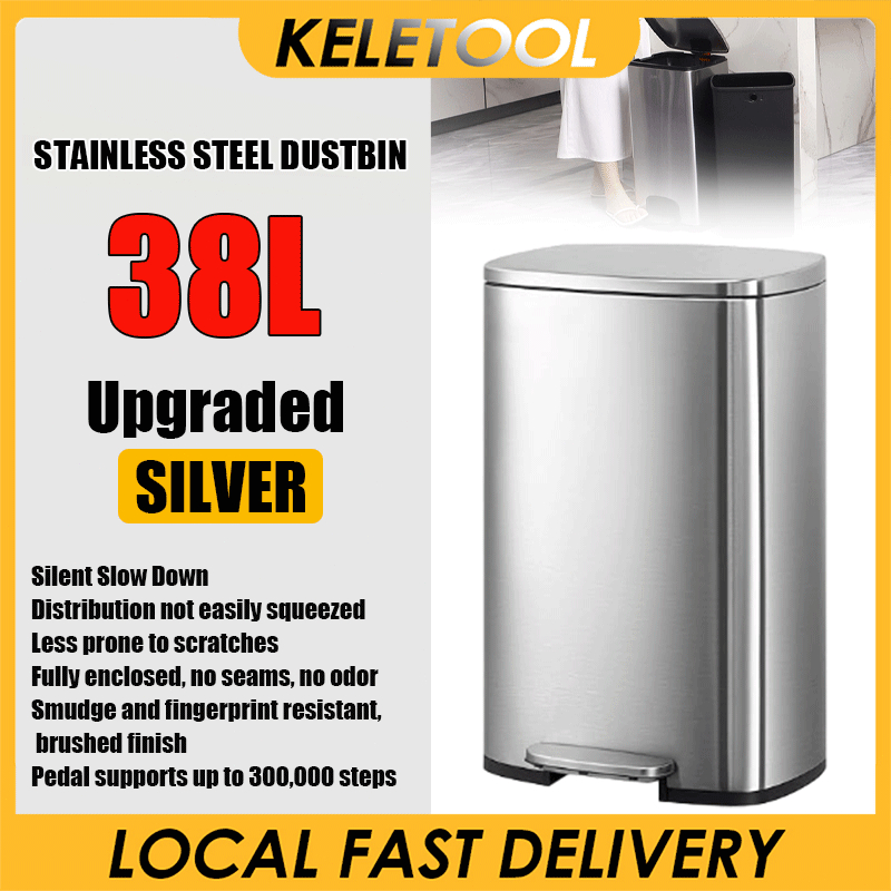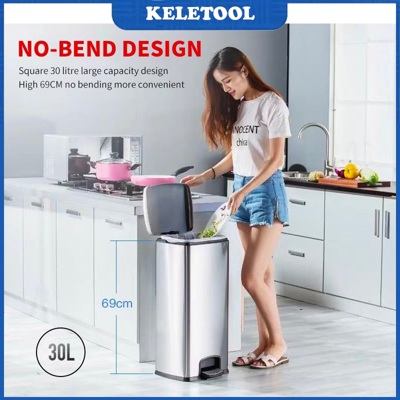 Kitchen stainless steel garbage bin foot operated garbage bin with lid large capacity garbage bin automatic packaging