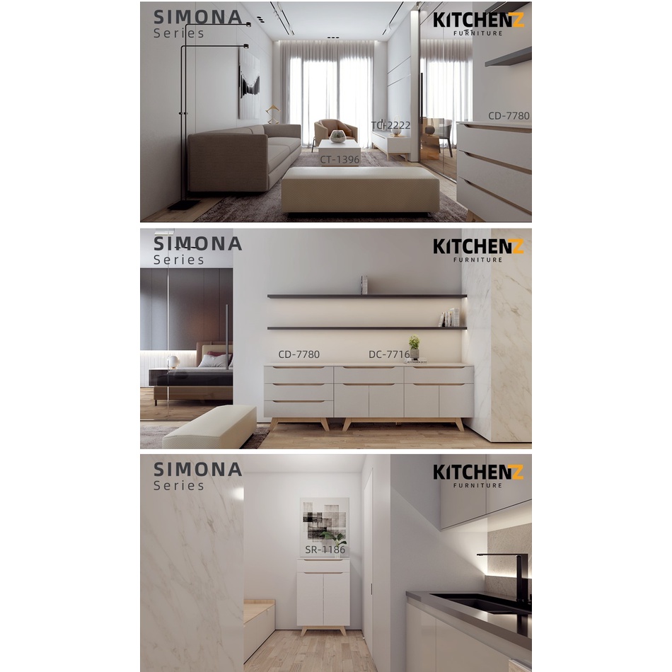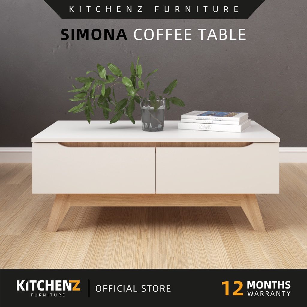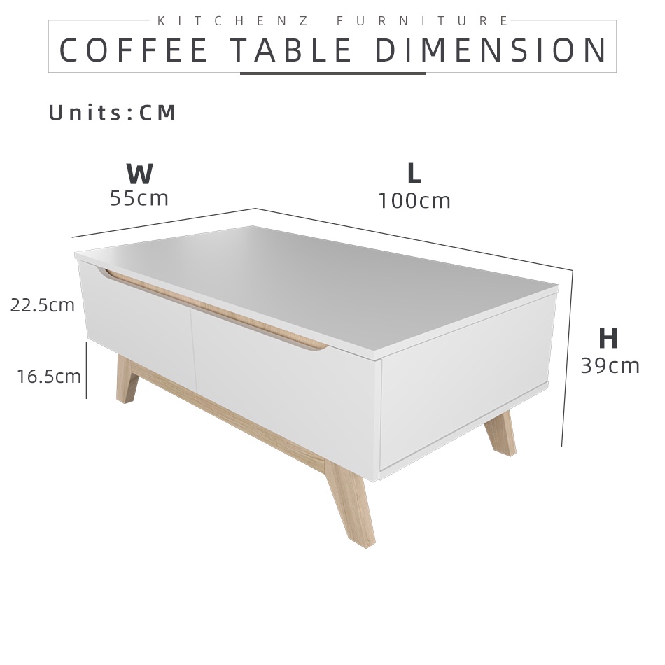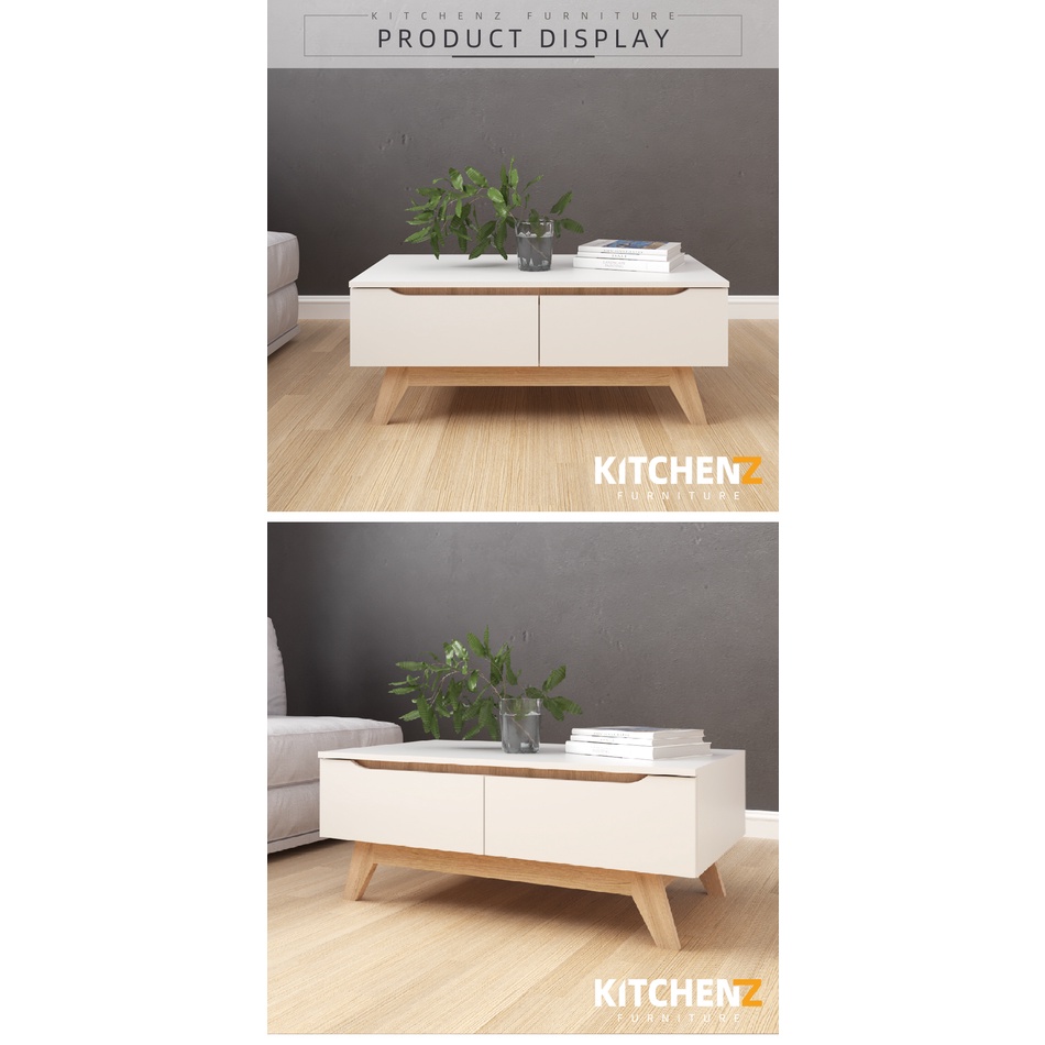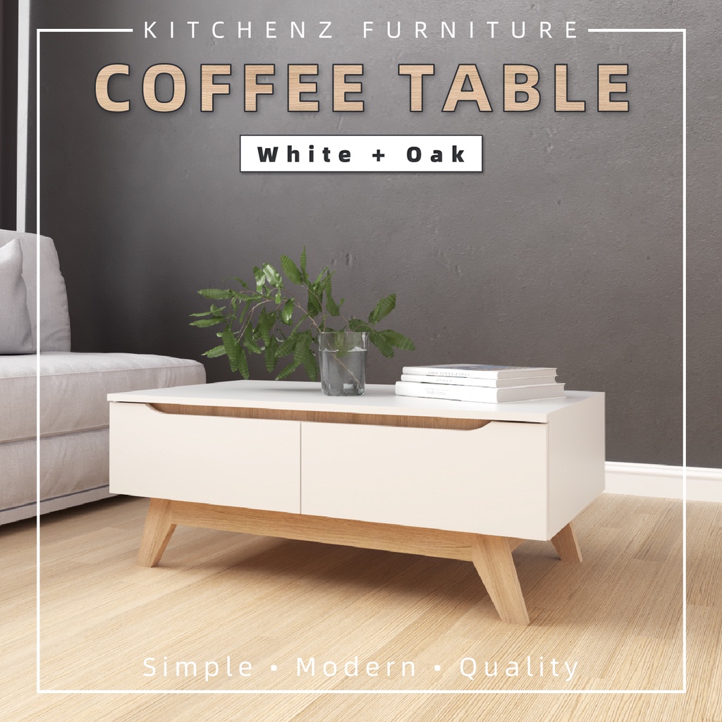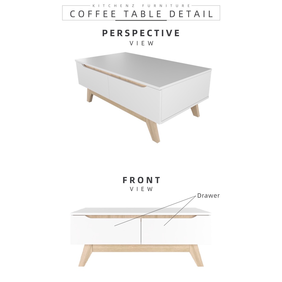 KitchenZ Simona Series 3.5Ft Coffee Table Living Room With Drawer Meja Kopi Side Table Meja Sisi Wooden Leg - 1394-NO+WT