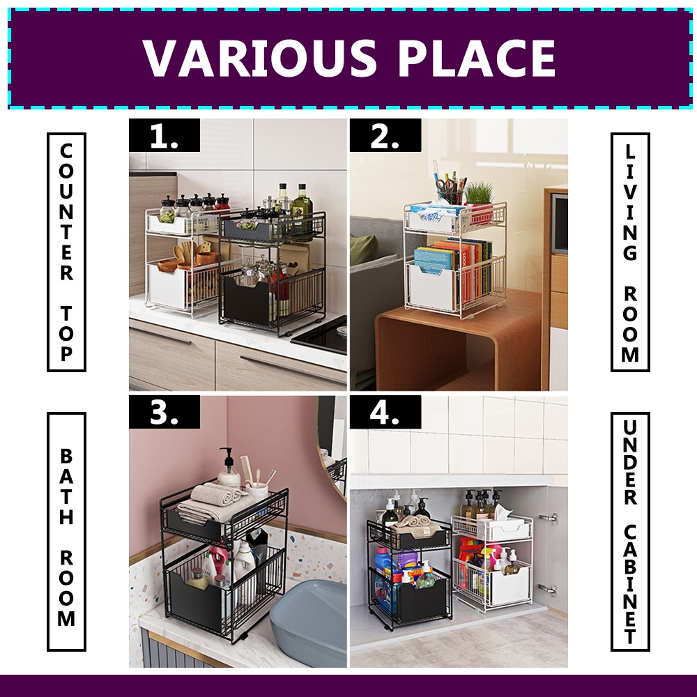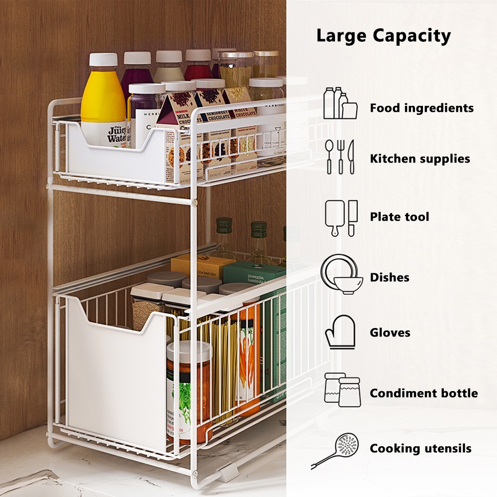 Kitchenut 2 Tier Space Saving Kitchen Top Storage Rack With Pull Out Drawer Design