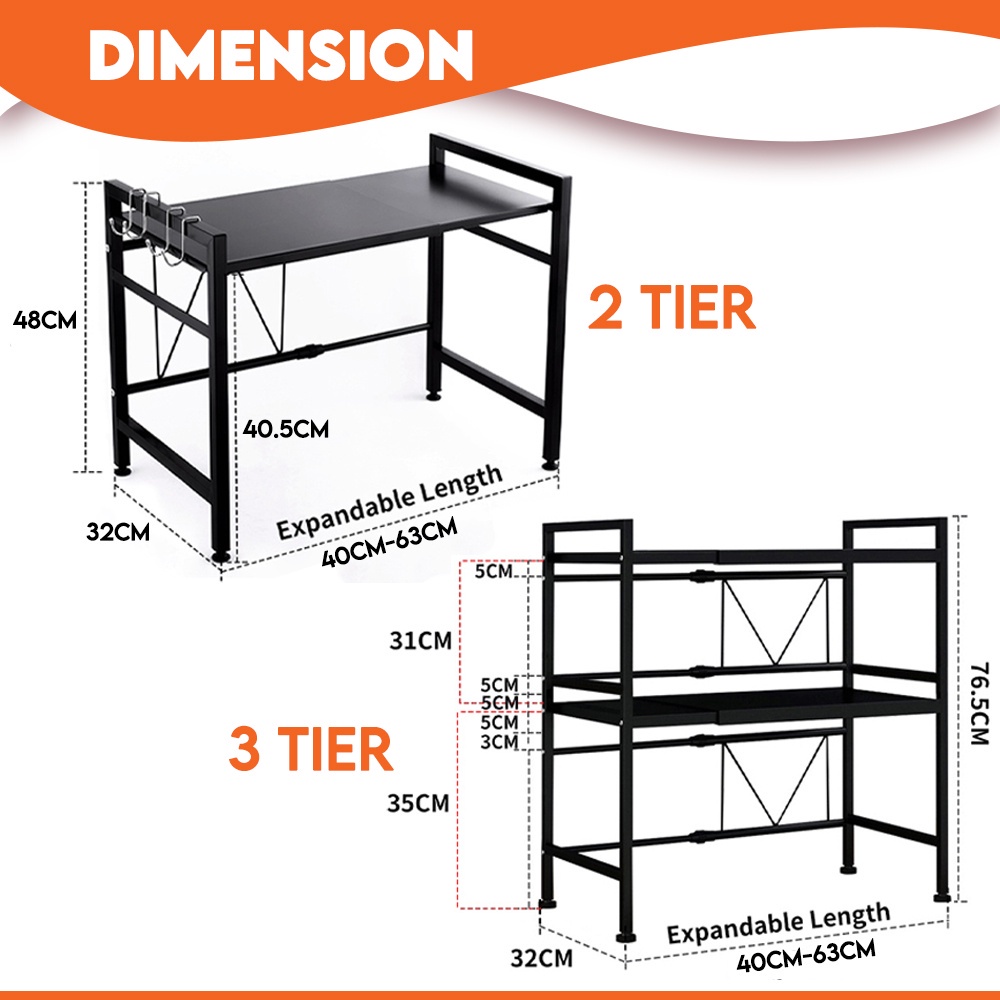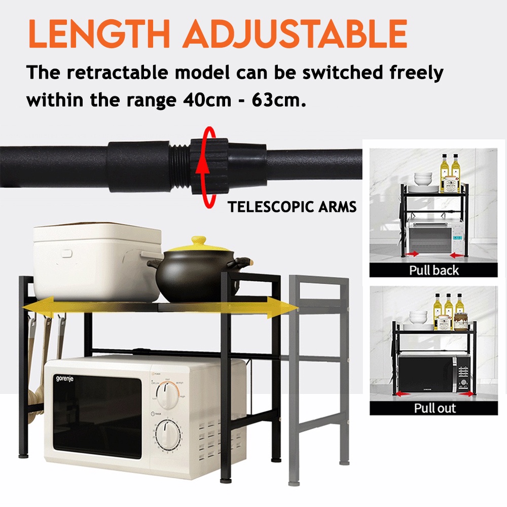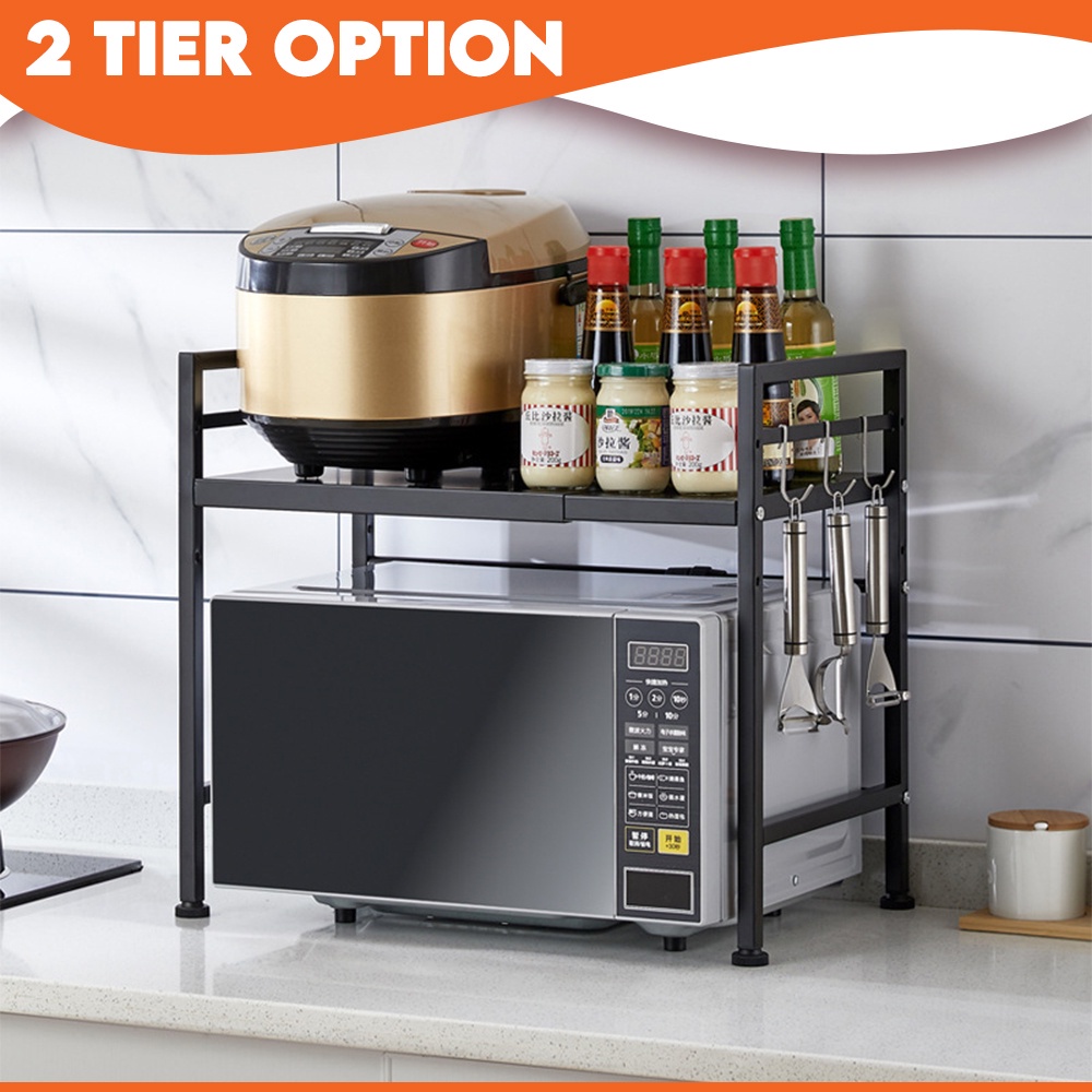 Kitchenut Adjustable Microwave Storage Rack Rak Gelombang Mikro Metal Rack Oven Organizer Rack Kitchen Shelf