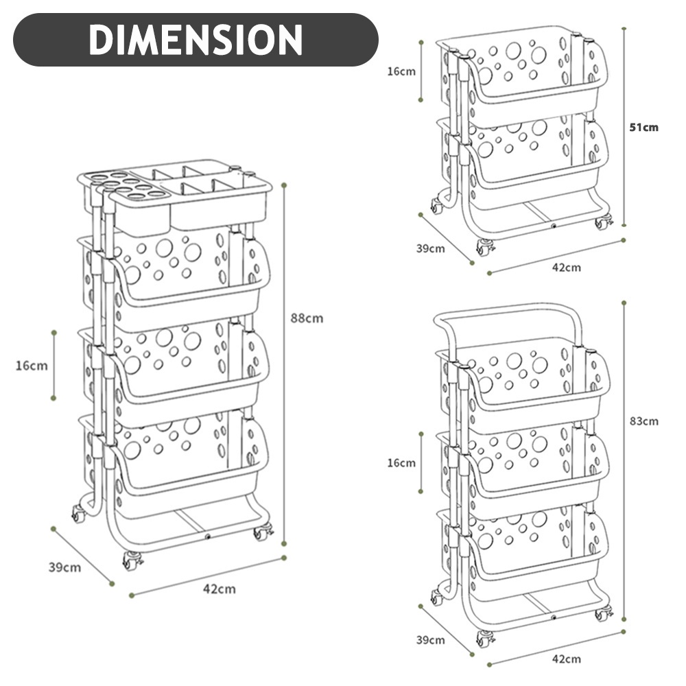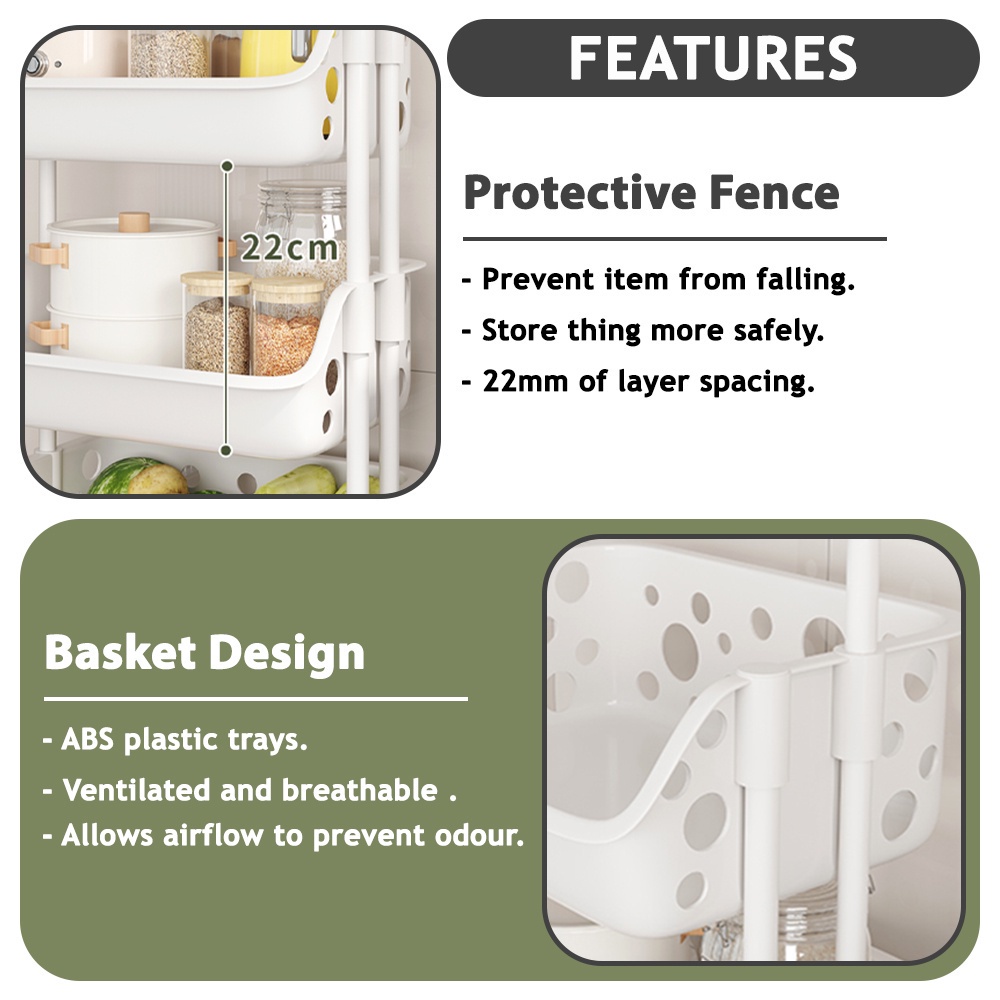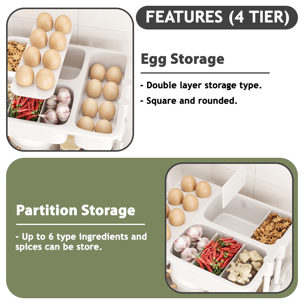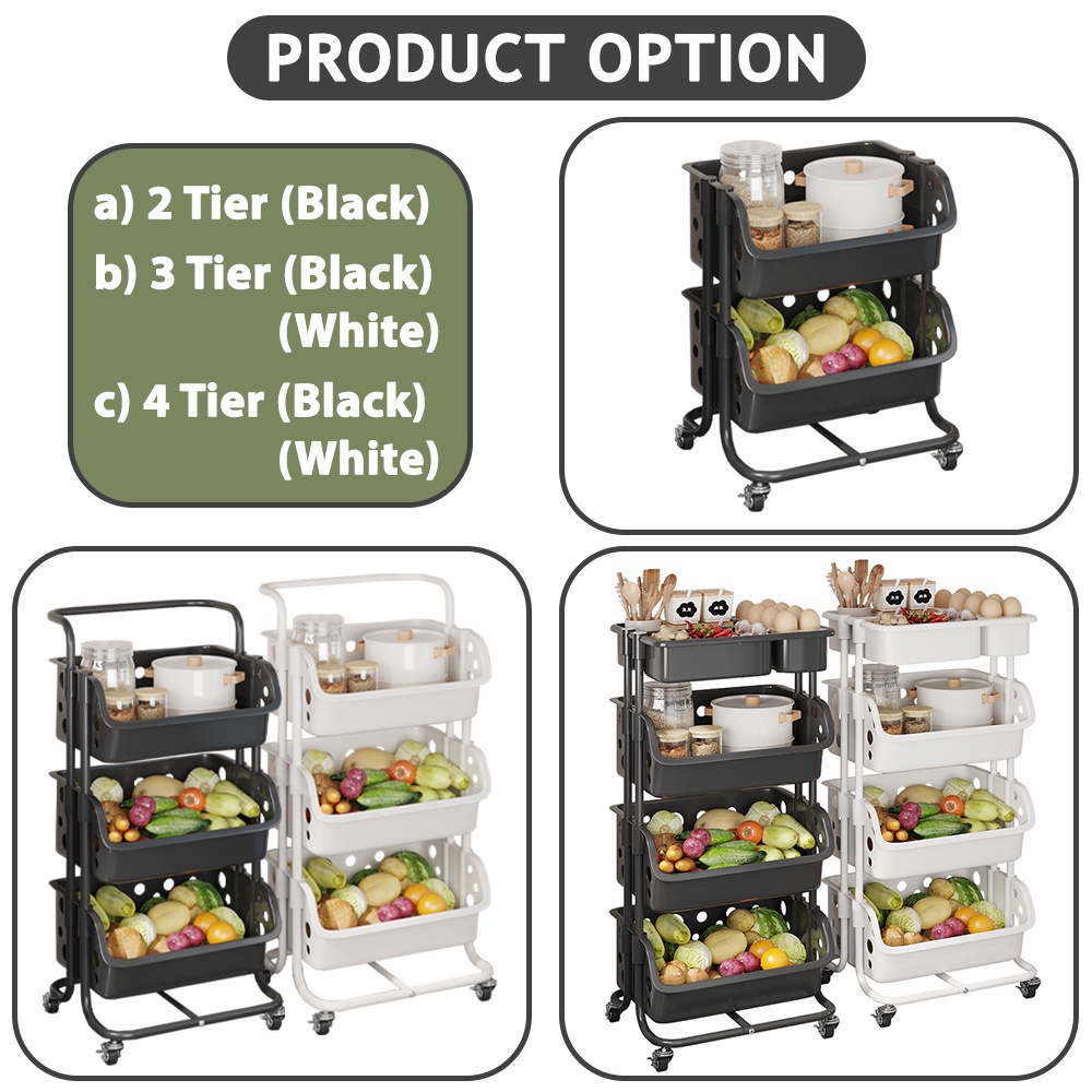 Kitchenut Kitchen Storage Trolley With Wheel Condiments Bottle/Fruits/Vegetables Organizer Rack