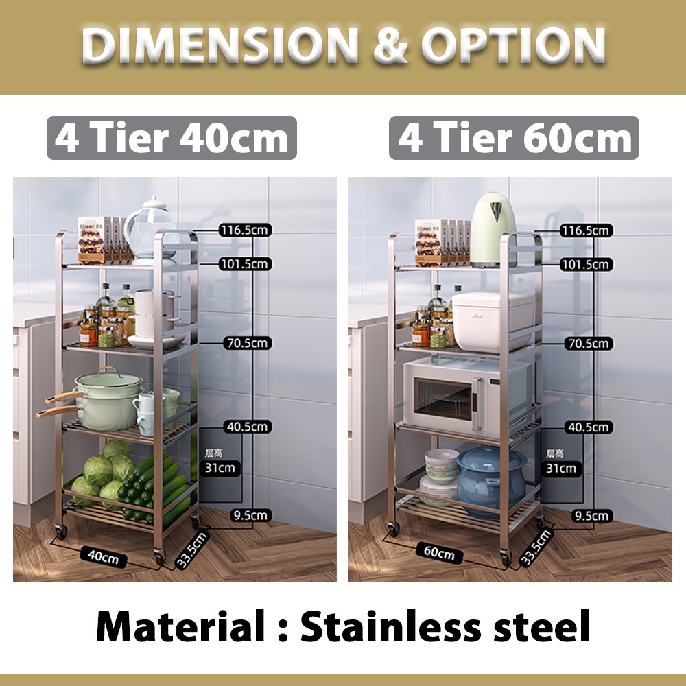 Kitchenut Multipurpose Adjustable Stainless Steel Kitchen Storage Rack Oven Rack Kitchen Shelf With Wheel