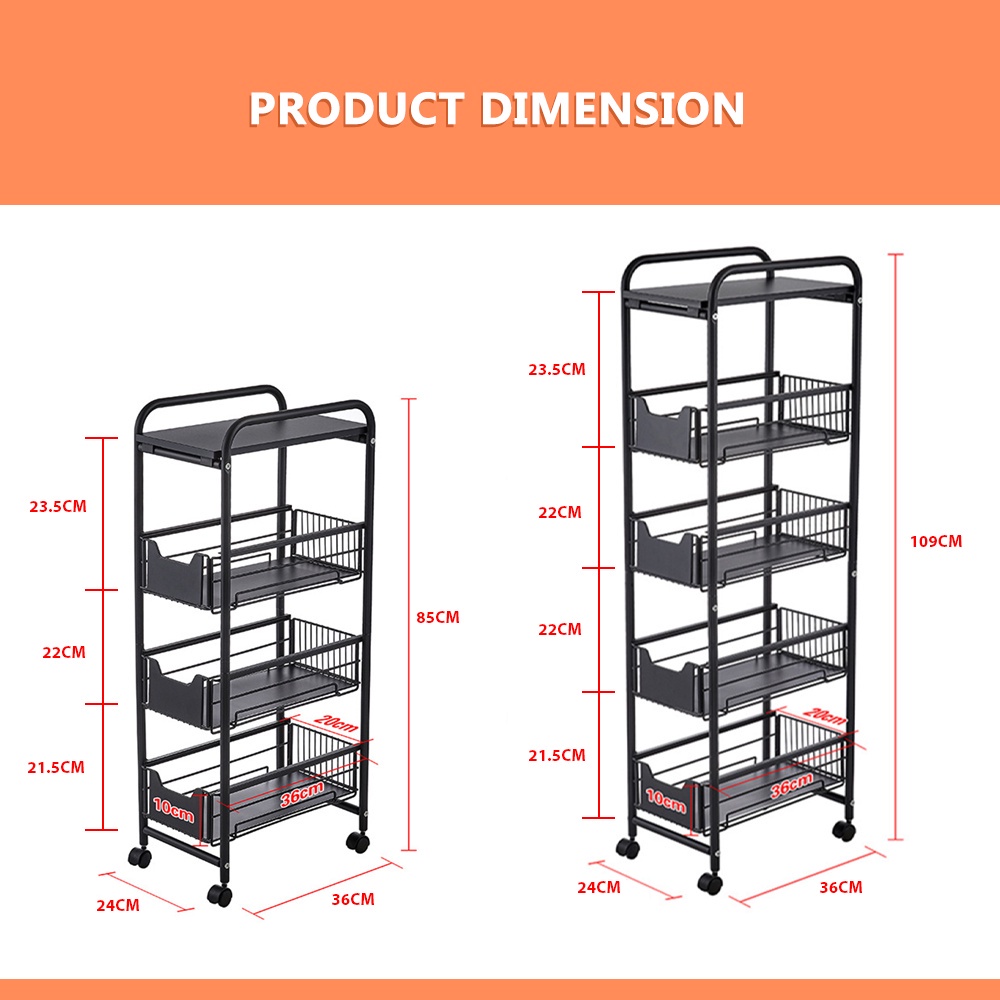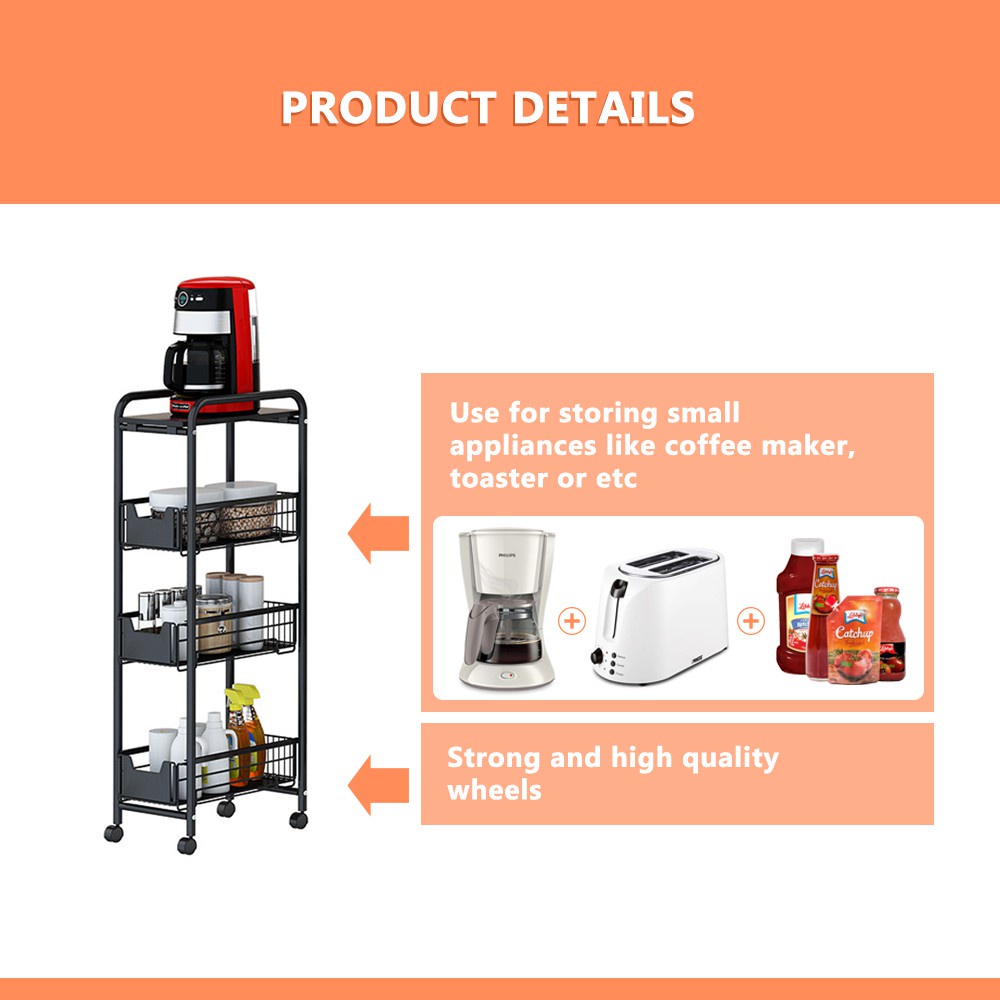 Kitchenut Space Saving Slim Slide Out Kitchen Storage Rack with Wheel and Drawer Trolley Rack Gap Rack