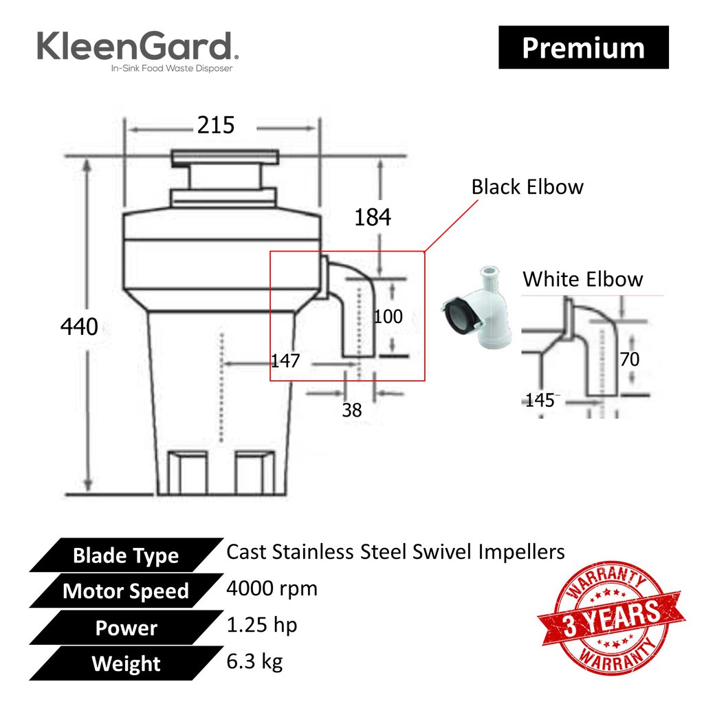 (New) Kleengard SD1250 DC Premium KleenGard In-Sink Food Disposer/Food Waste Disposal/Food Waste Grinder