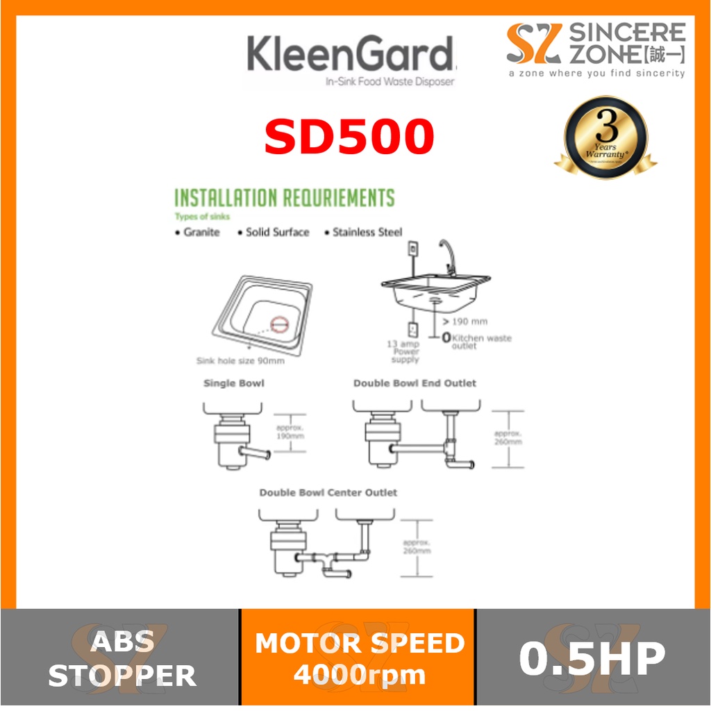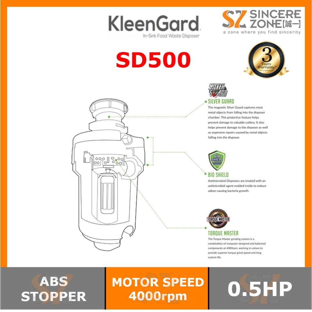 Kleengard SD500 Food Waste Disposer 0.5HP SD-500 / Waste Disposer / Insinkerator