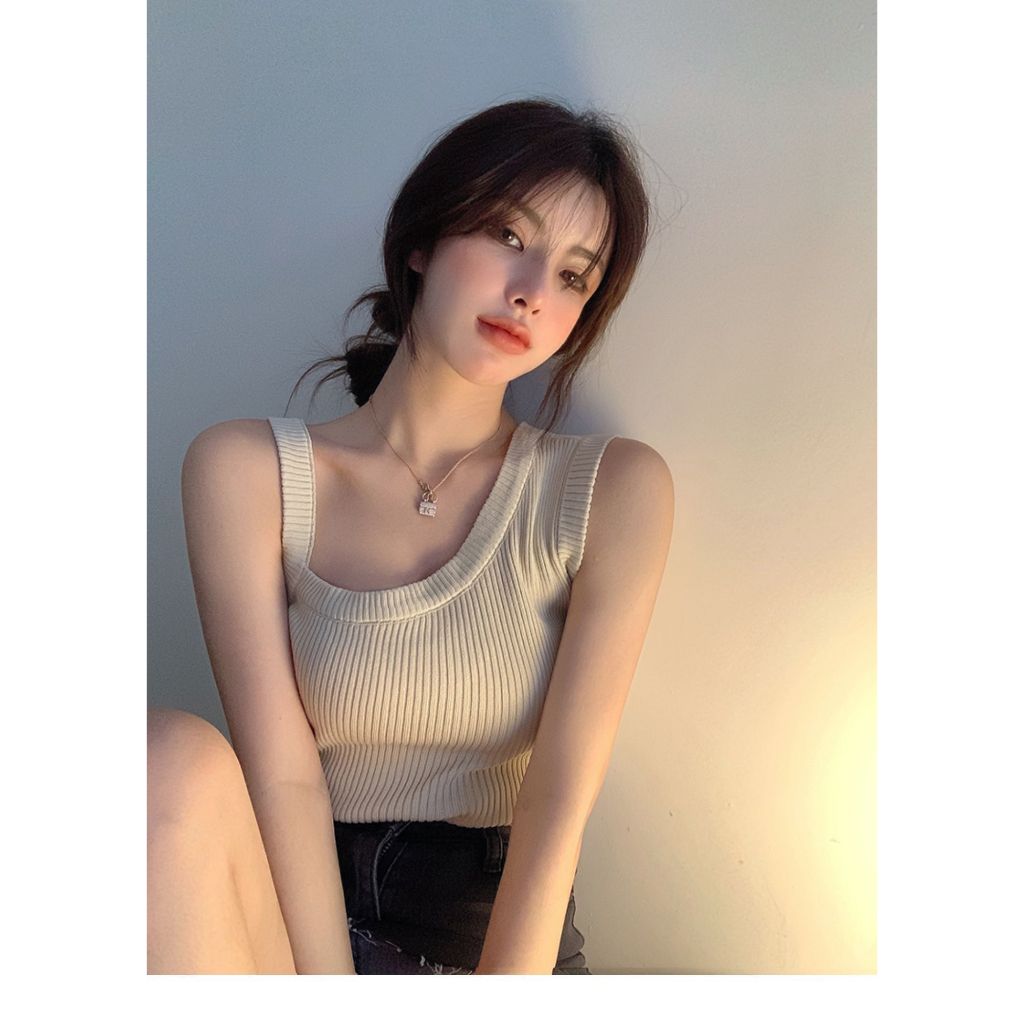 Knit Cotton Girl Female Fashion Sleeveless Singlets Round O Neck Blackless Singlet Comfortable Short Sporty Wear Halter Crop Tank Camisoles Navel Expose Irregular Tops #1086