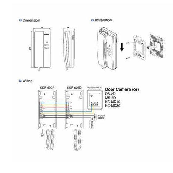Kocom Korea 1 to 2 Door Phone System Intercom 230V AC Powered 4 Wire VDE Cable KDP-602AD