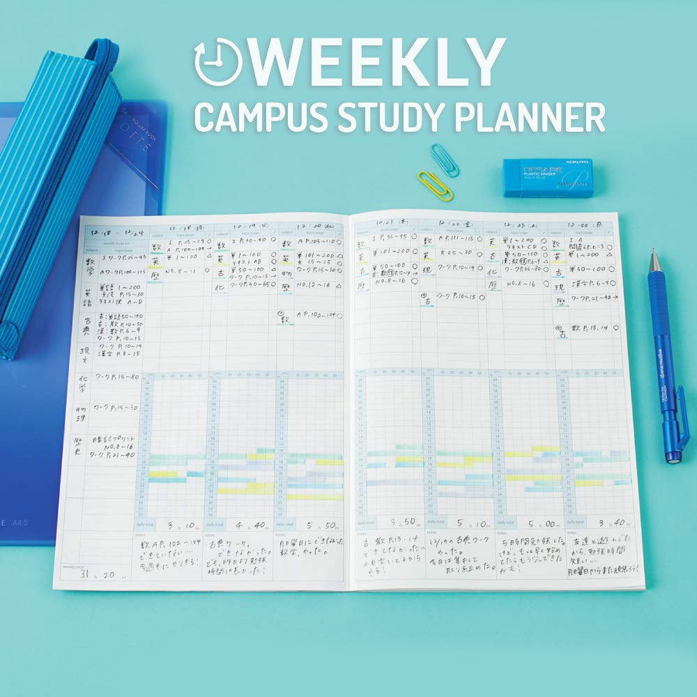 Kokuyo Campus Study Planner Notebook - A5 / B5 - WEEKLY PLANNER - 27 weeks