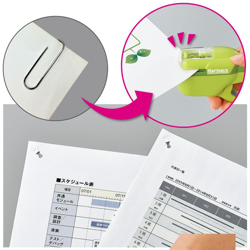 Kokuyo Harinacs Latest Color Staplerless Stapler Gun-Type Paper Press 10 Sheets