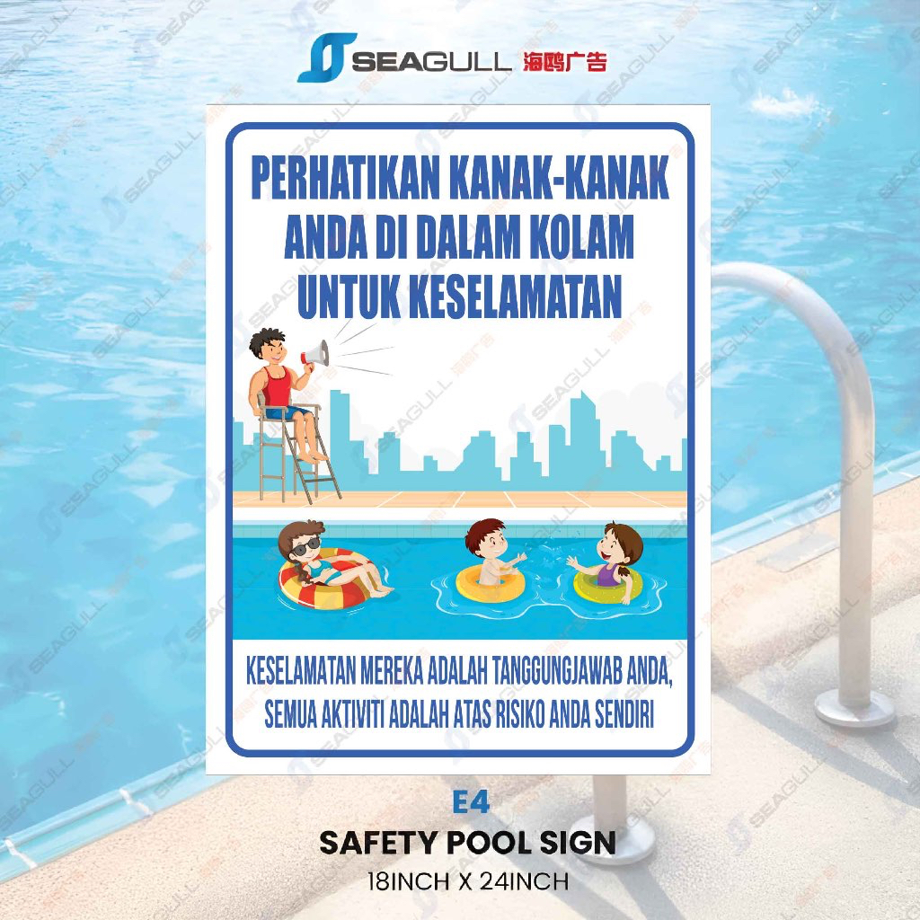 Kolam Swimming Pool Watch Kids No Lifeguard On Duty Safety Signage Kolam Renang Pool Rules Own Risk Watch your Kids