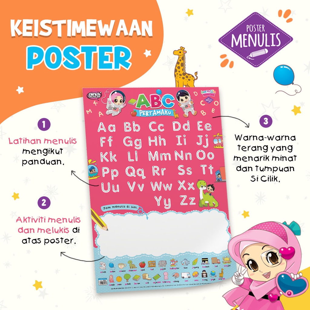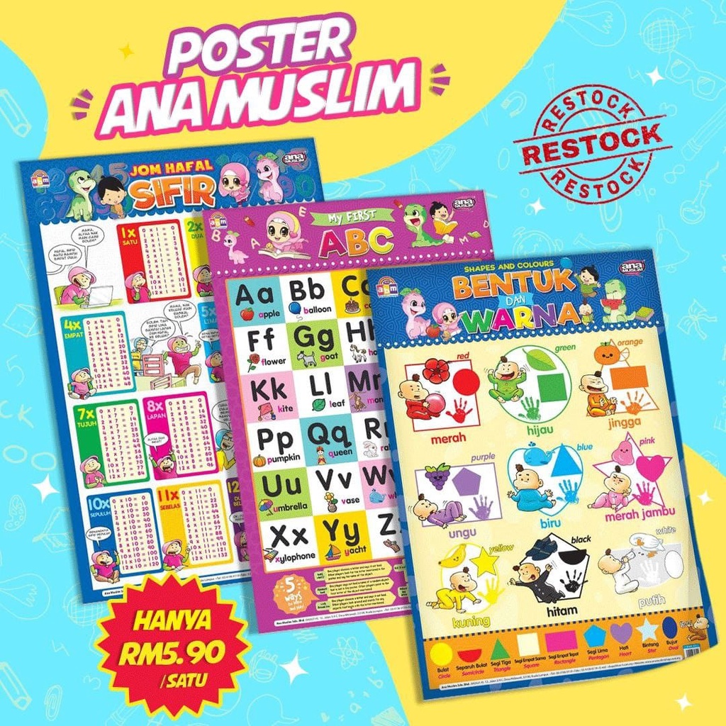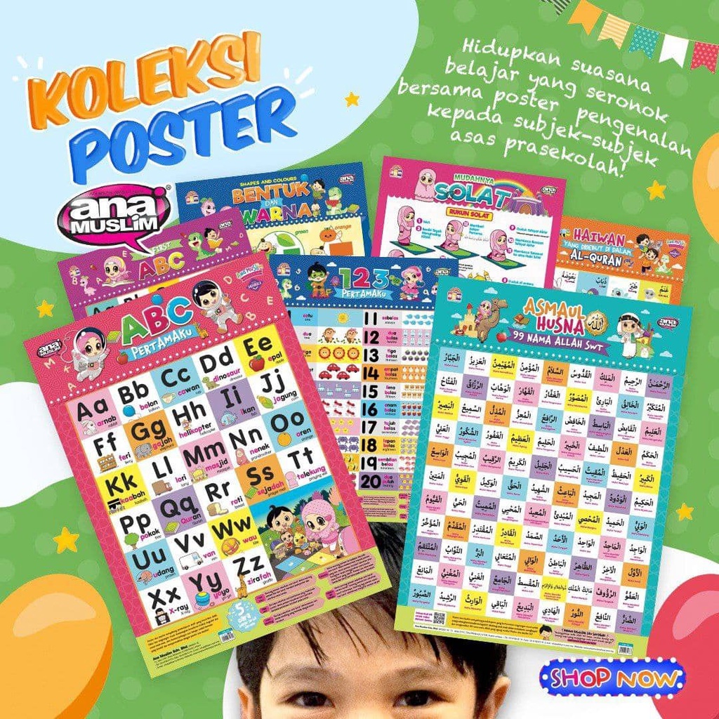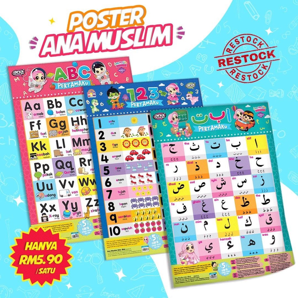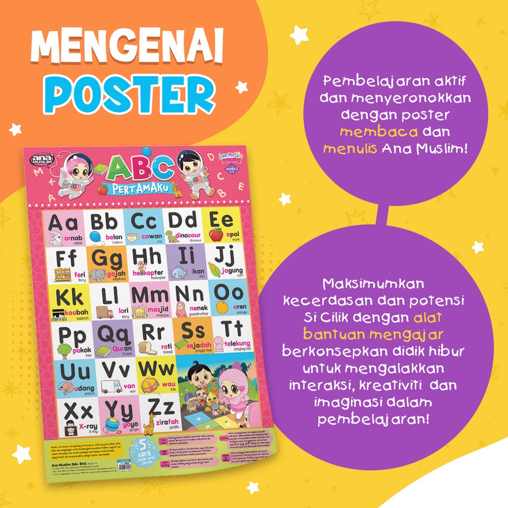 Koleksi Poster Pendidikan Poster Belajar ABC 123 ALIF BA TA l Alat Bantuan Mengajar Ana Muslim