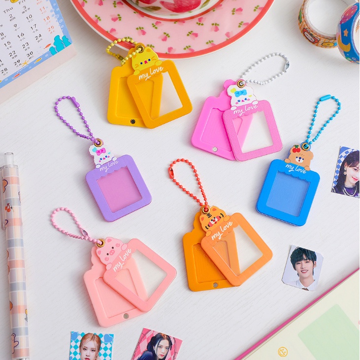Korea Acrylic ID Keychain Cutie Bear Shape keychain Photocard Album Keyring Holder Photocard Album Bag Hanger Wallet