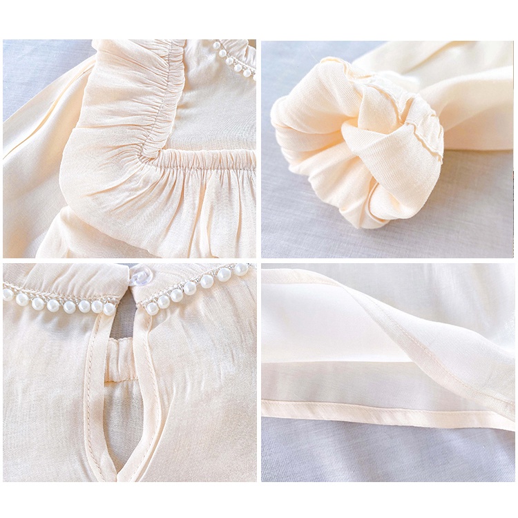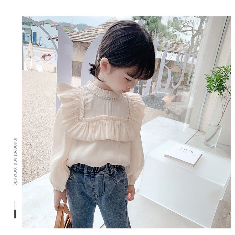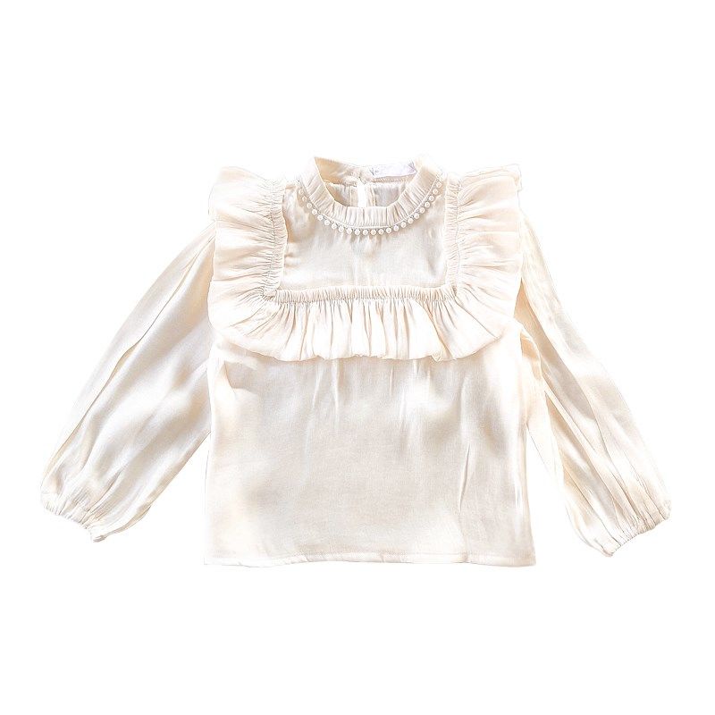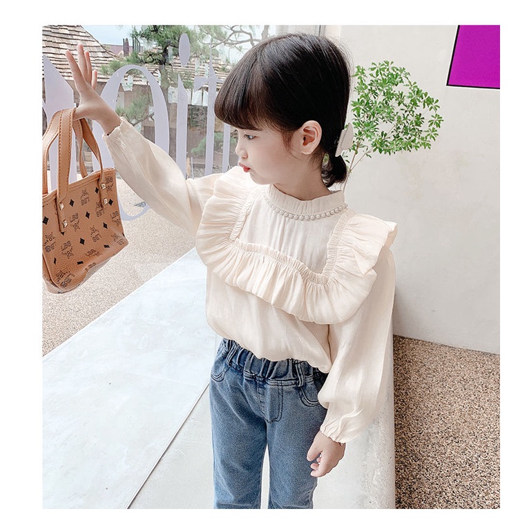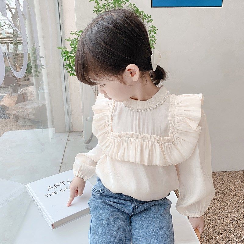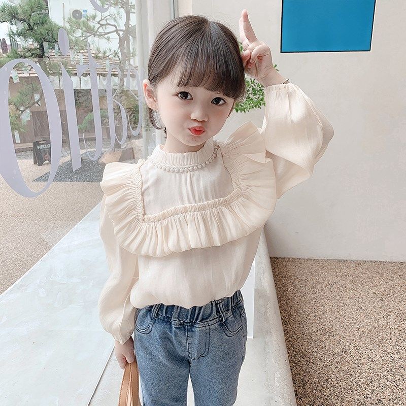 Korea Blouse Kids Girl Chiffon Shirt Puff Sleeve Blouse High Neck Top