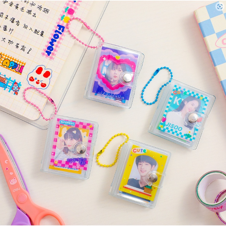 Korea Ins Mini Album Keychain 2 Inch ID Photo Album Keychain Kpop Bag Deco Photocard Keychain Tik Tok Mini Album Keyring