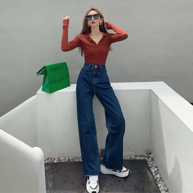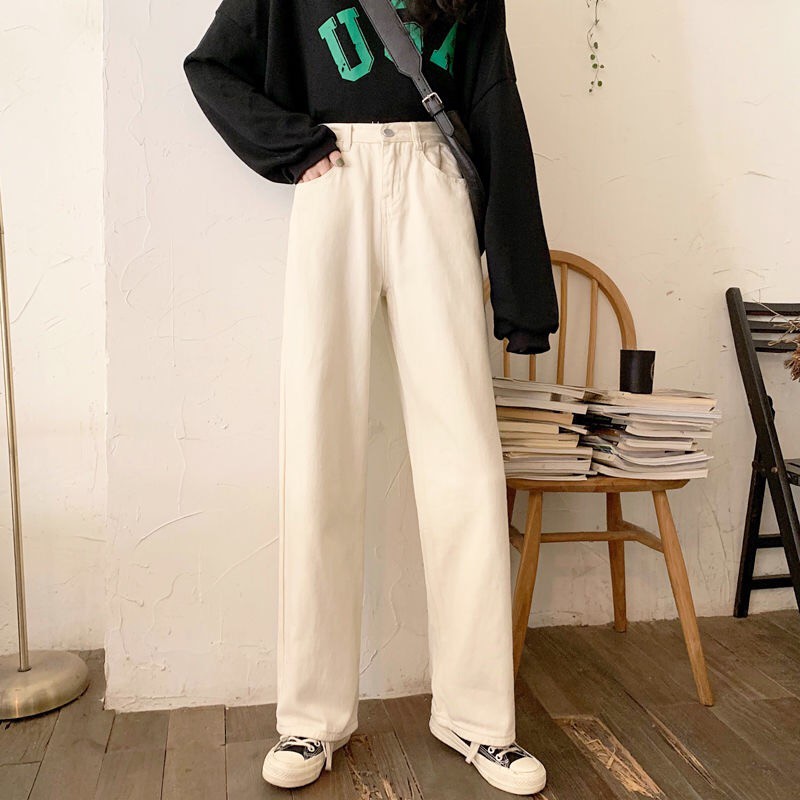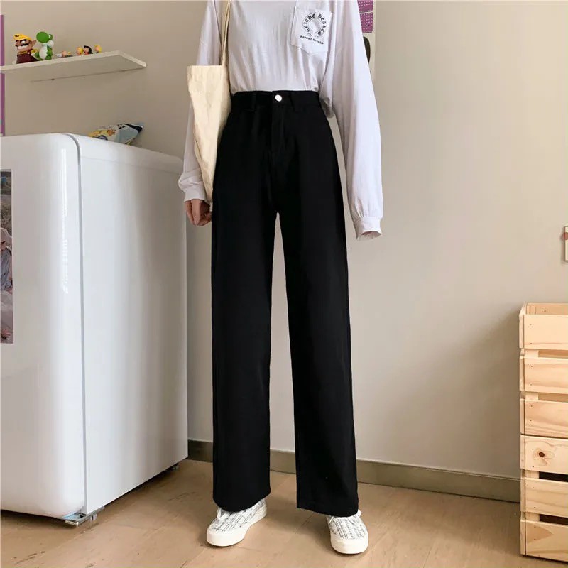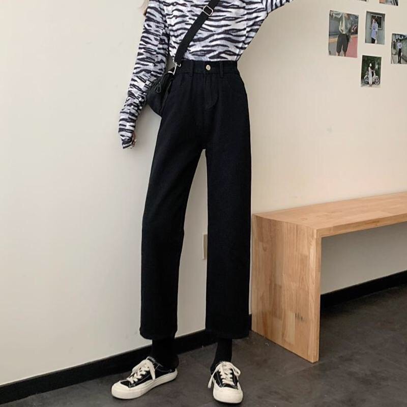 Korean Loose Slim Jeans Women's All-Matching High Waist Straight Cropped Pants Trendy Denim Long Jeans Pants
