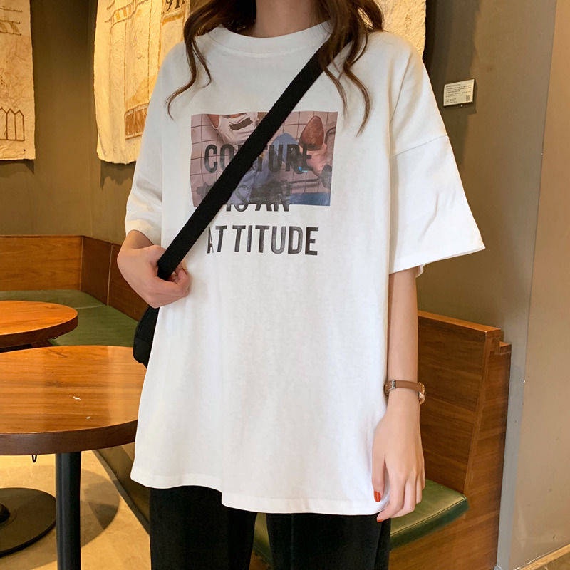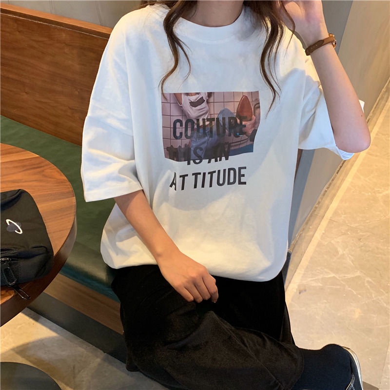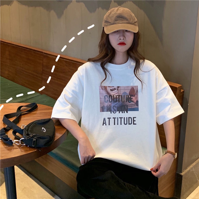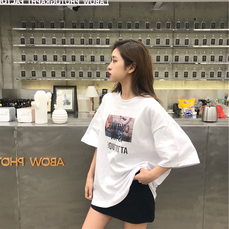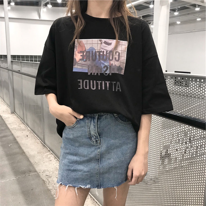 Korean Cartoon Prints Oversize Tee Short-sleeve T-shirt Casual l Baju Lengan Pendek Plus Size fashion streetwear women