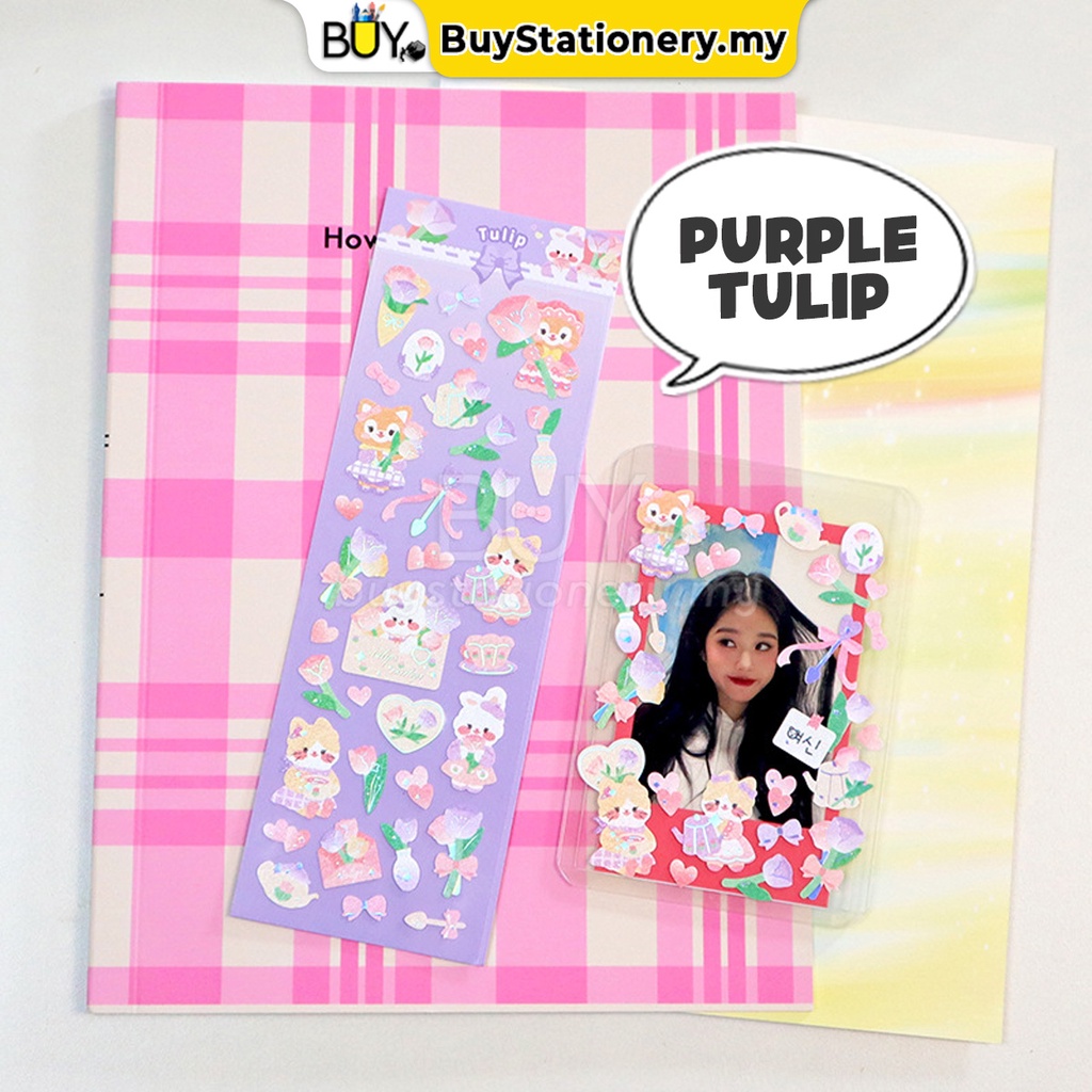 Korean Ins Cute Little Animal Flower Sticker Hot Stamping Toploader Photocard Journal Decorative Stickers (STK60) - PCS
