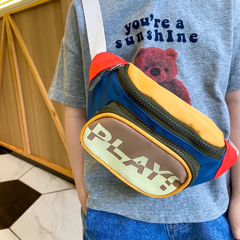 Korean Kid Boys Cool Splicing Color Sling Bag Waist Bag Crossbody Bag Children Messenger Bag Shoulder Bag Beg Budak