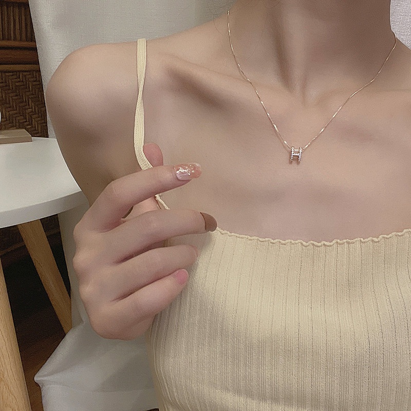 Korean Simple Letter H Diamond Crystal Pendant Chain Silver Gold Titanium Steel Women Fashion Jewelry Necklace