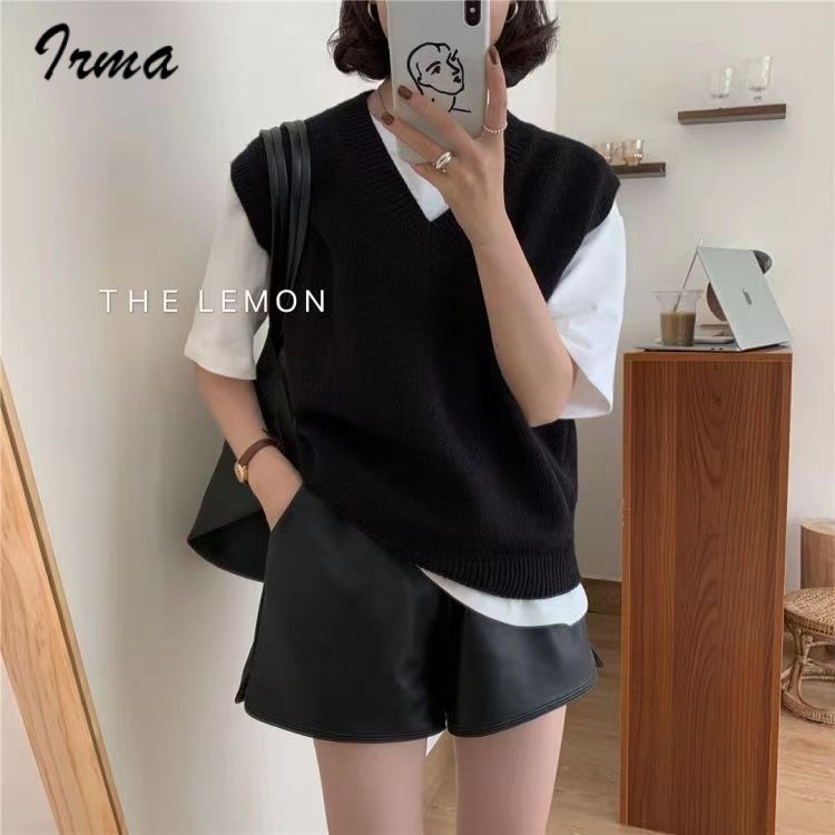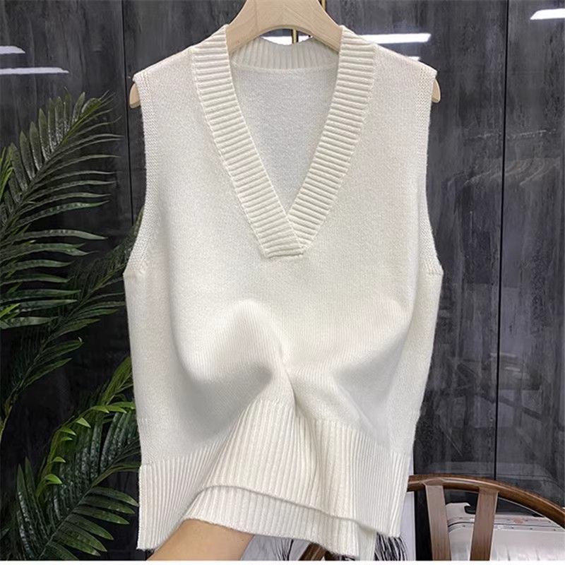 Korean Style Sleeveless Knit Vest V-neck Women's Minimalist Preppy Loose Outer Wear Vest