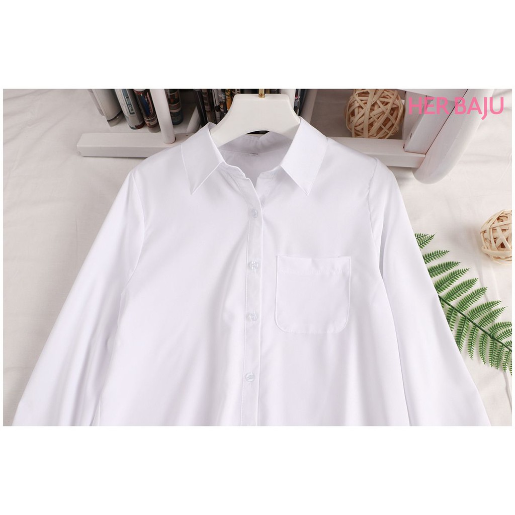 Korean Trendy White Shirt Women Long Sleeve Collared Blouse Baju Putih