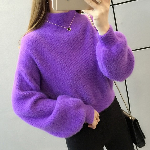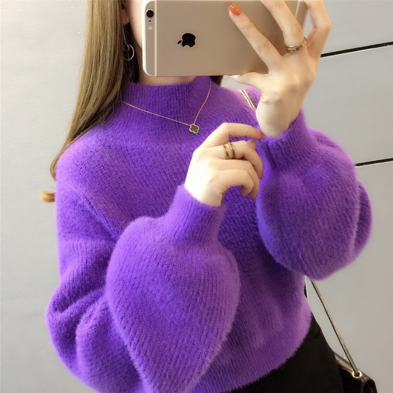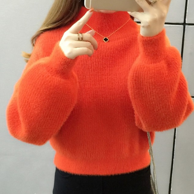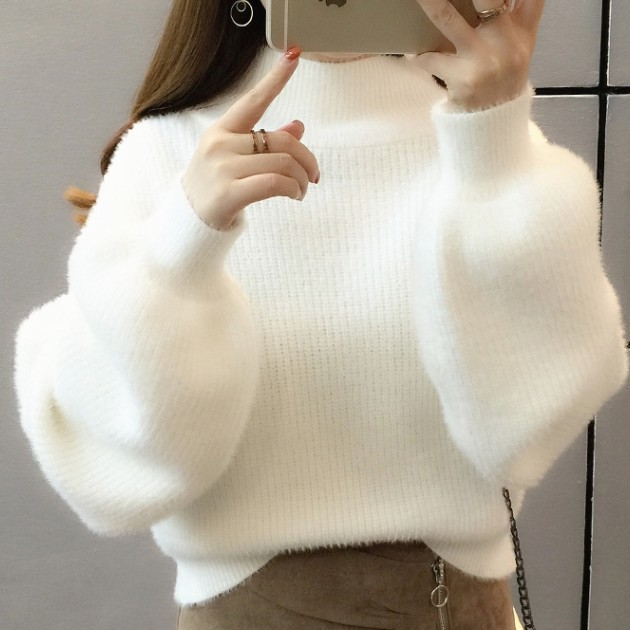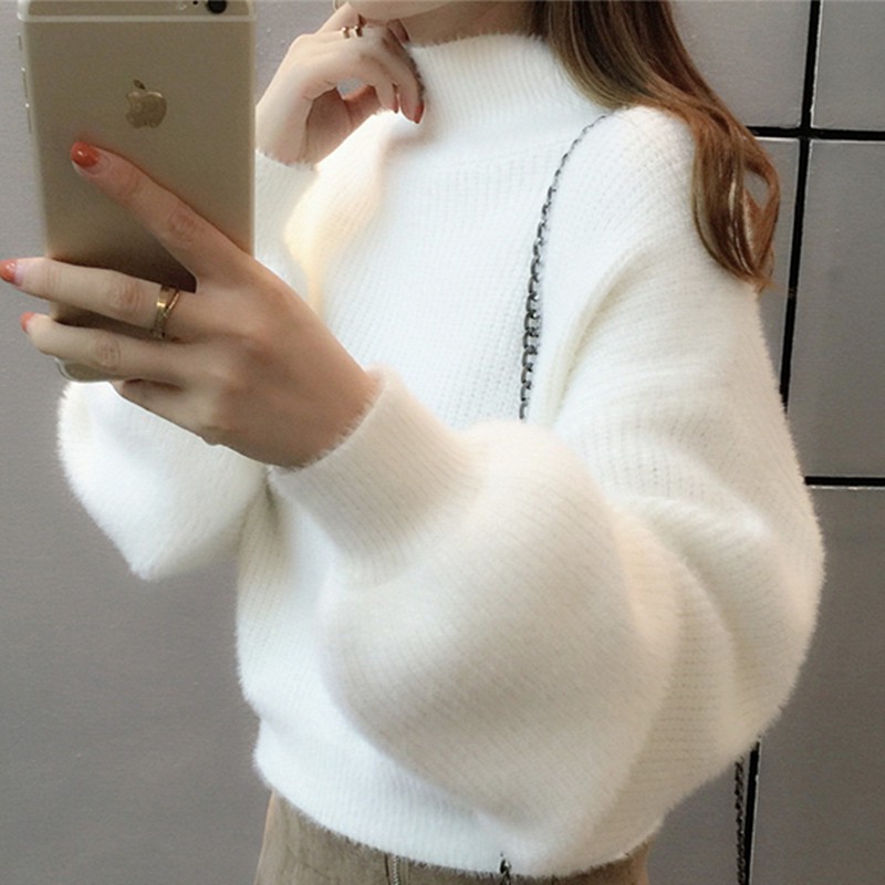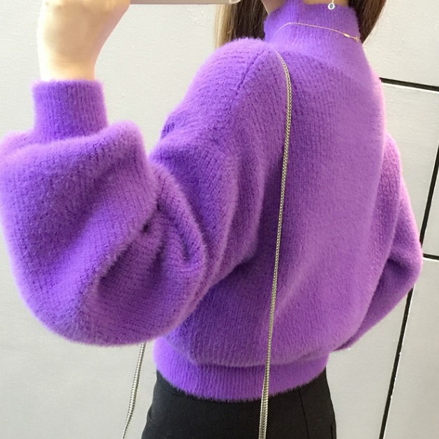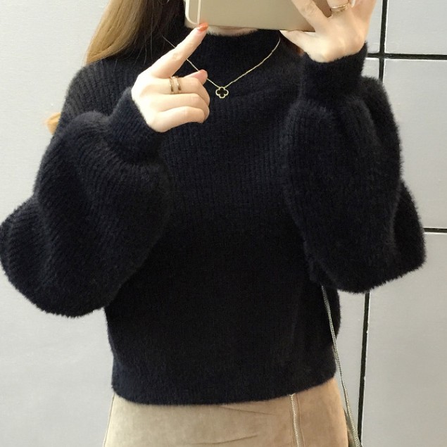 Korean Turtleneck Sweaters Women Fur Pullover Long Sleeve Outerwear