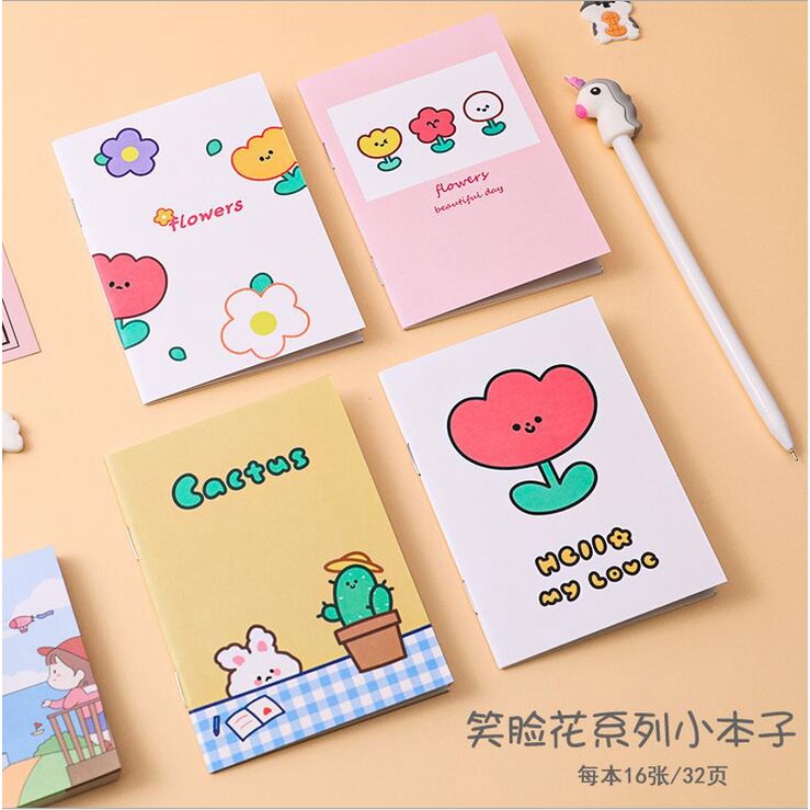 Korean cartoon notebook 64k soft face diary student portable notebook small Cartoon Cute diary stationery Ready Stock