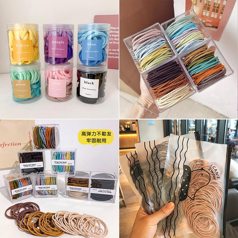 Korean version of nylon high elasticity seamless hair tie women's rubber band bird bag packaging ins suit hair rope套装发绳