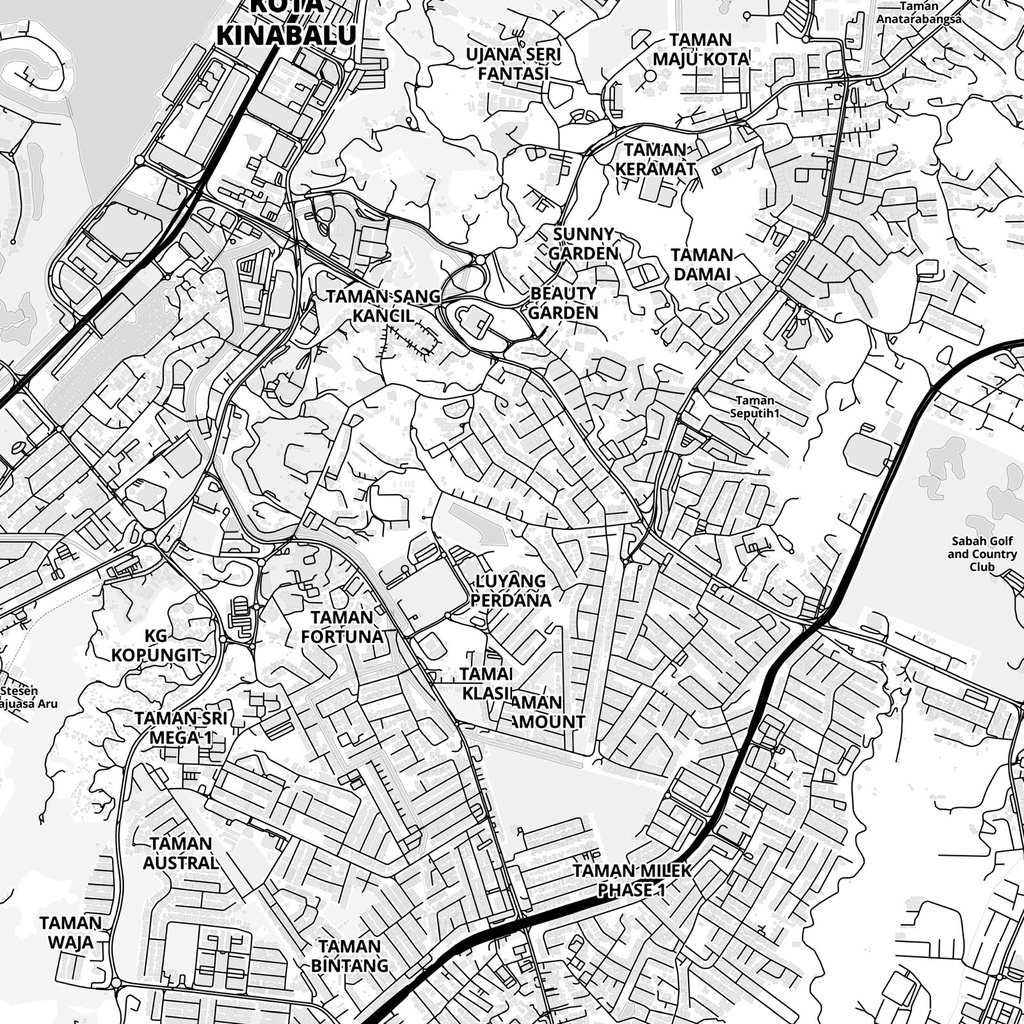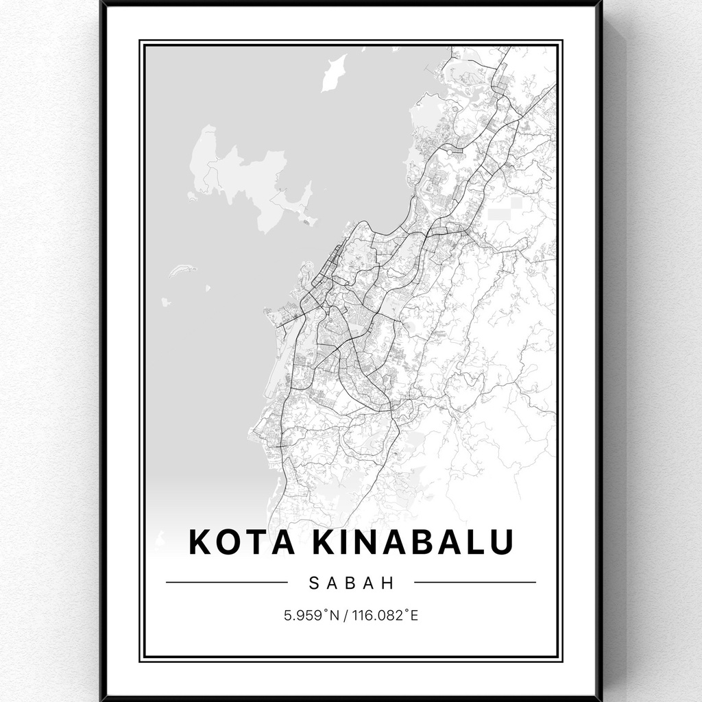 Kota Kinabalu, Sabah Modern Minimal City Map Poster by Petagraphy