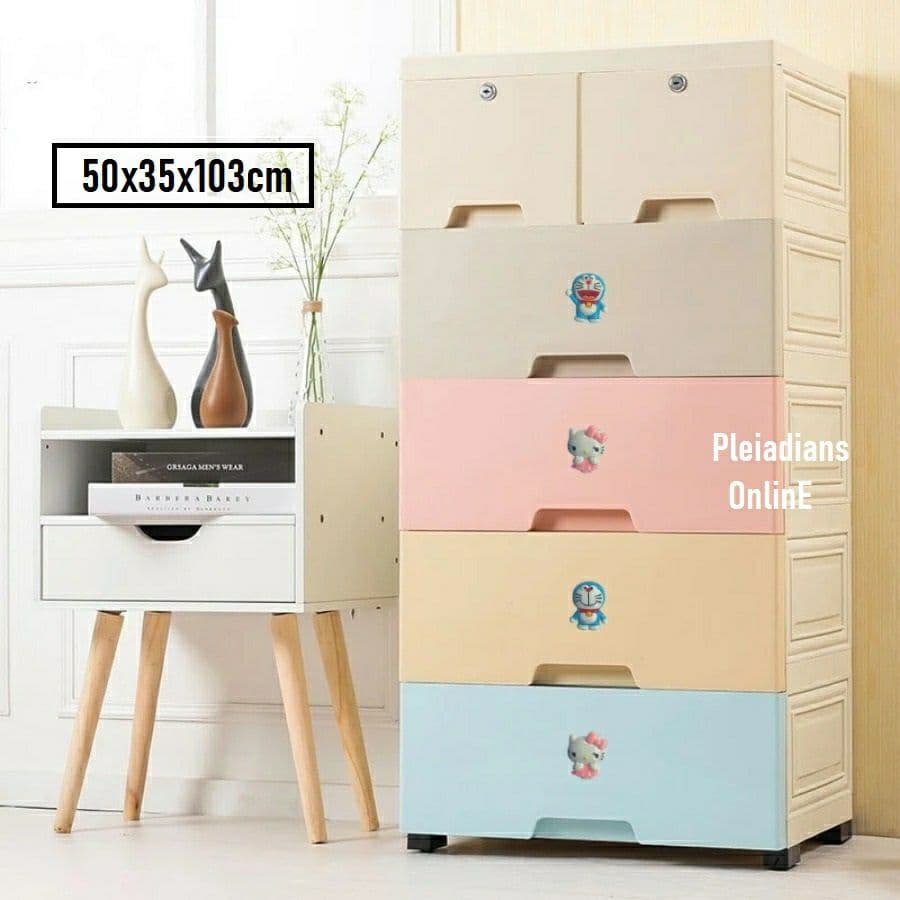 Kotak Baju Anak Baby Drawer Storage Cabinet Box Almari Perabut Cartoon Kids Budak Rack Doremon Rak Pakaian Laci