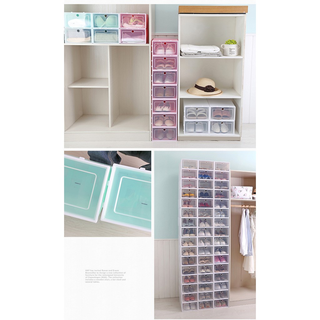 Kotak Kasut Viral Warna Warni Plastic Kotak Display Sneaker Shoe Storage Box Stackable Transparent