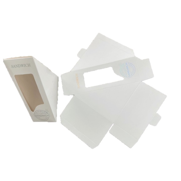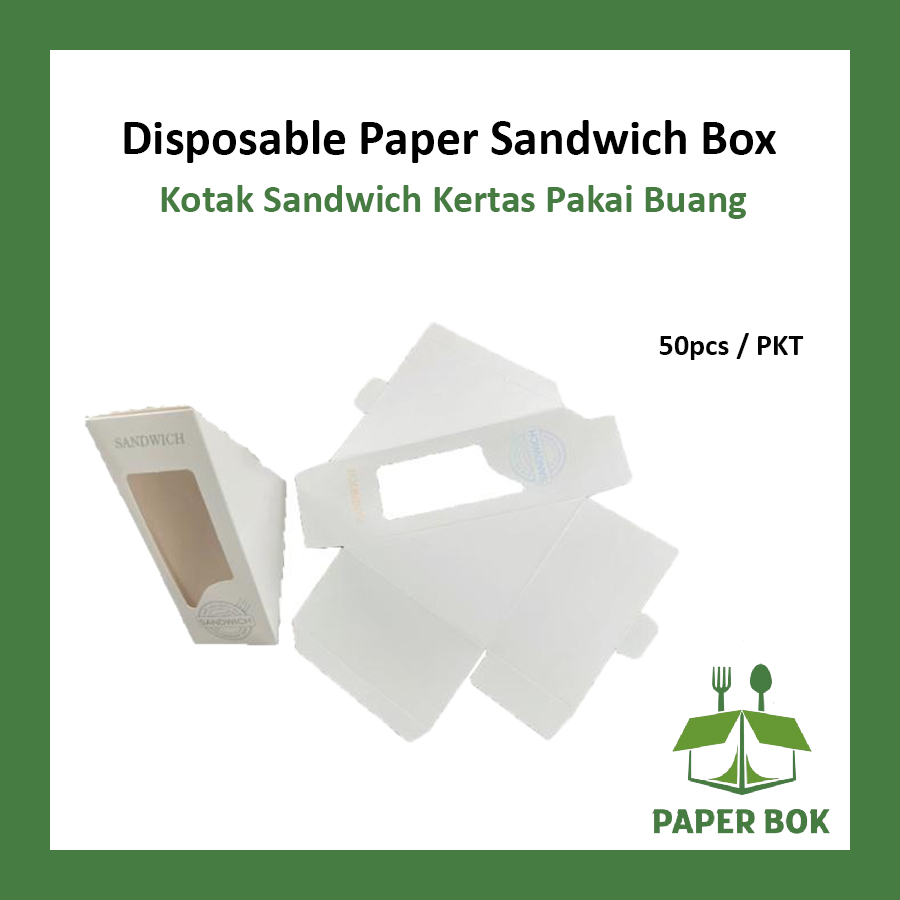 Kotak Kertas [50pcs] Flat Packaging Folding Triangle Sandwich Box / Paper Sandwich Box with Metalised Silver Words