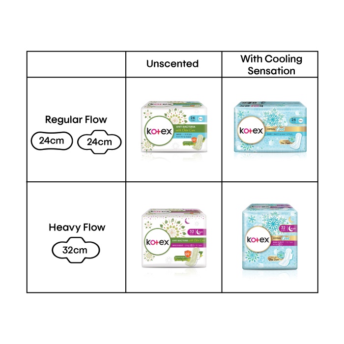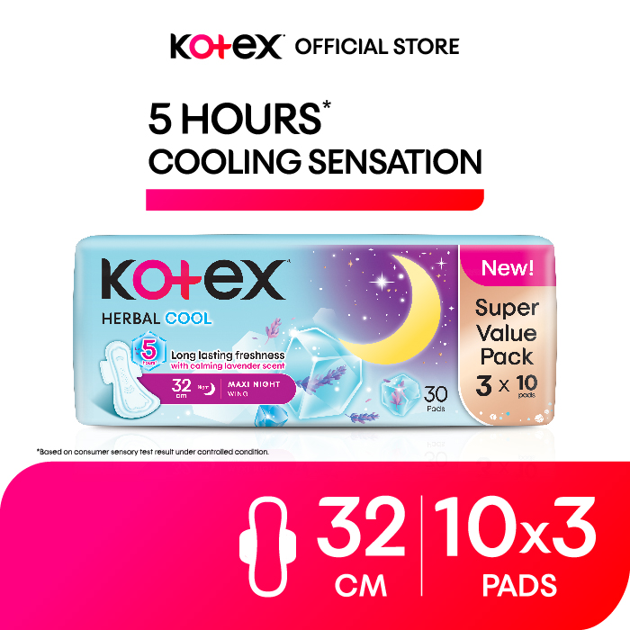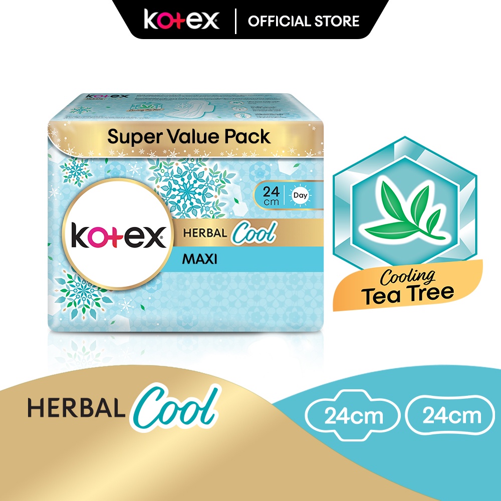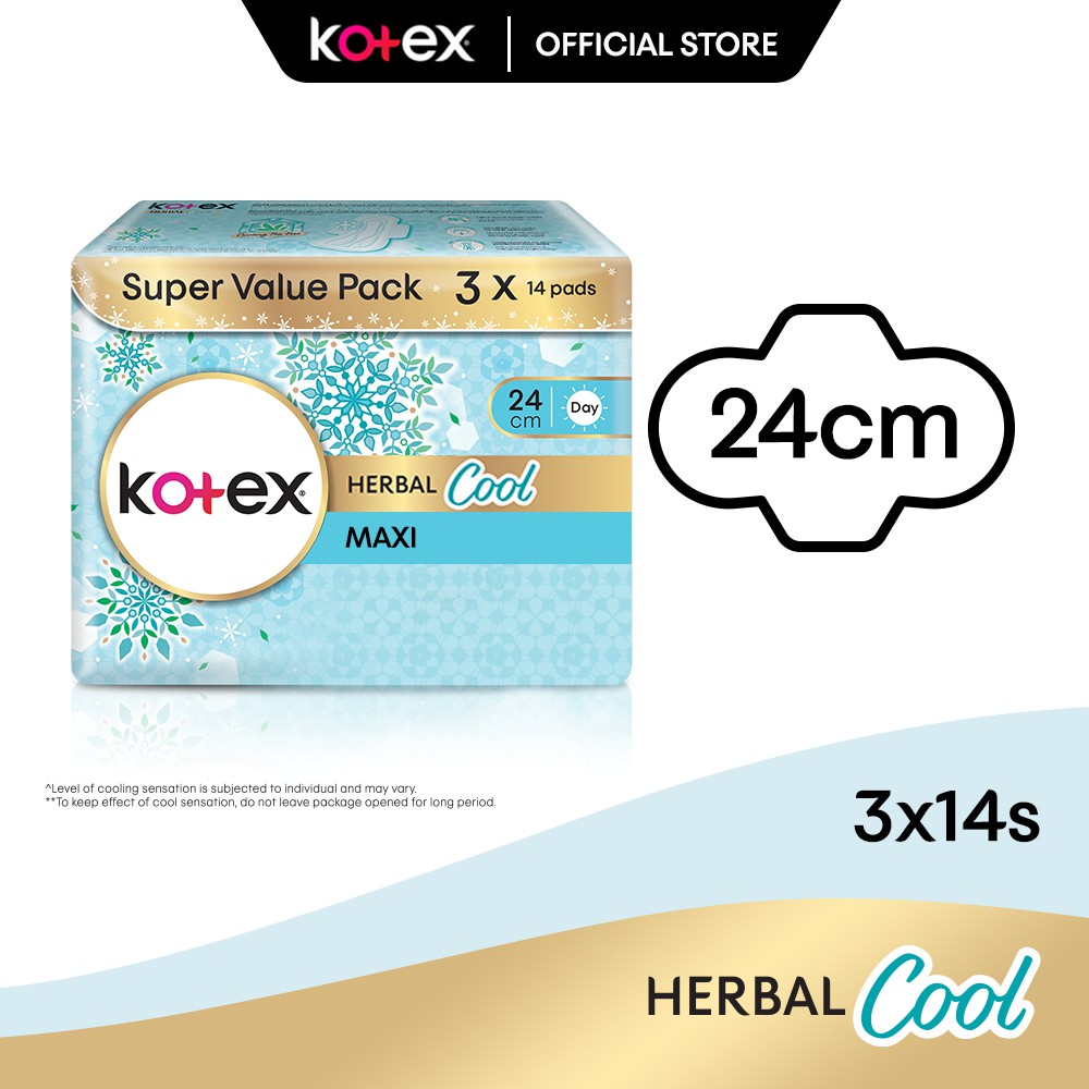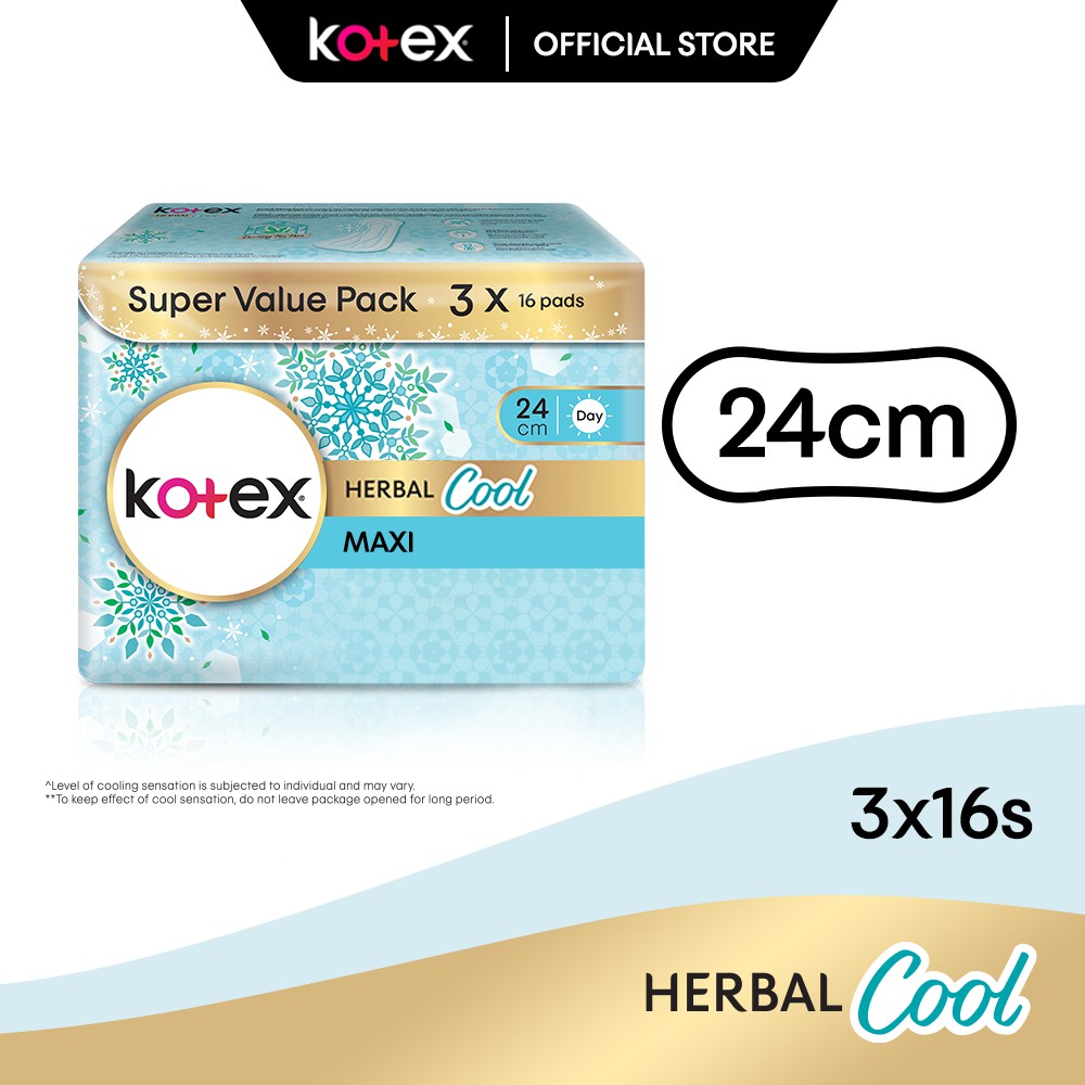 Kotex Herbal Cool Pad Maxi 24cm / Overnight 32cm (3 Pack)