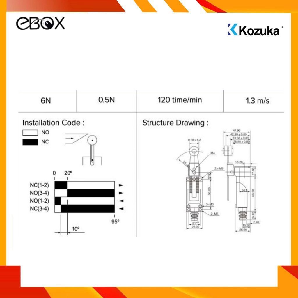 Kozuka KZ-8108 Mini Limit Switch (Adjustable Roller Arm)
