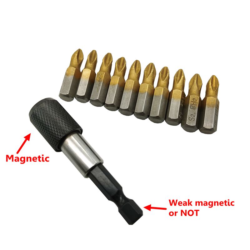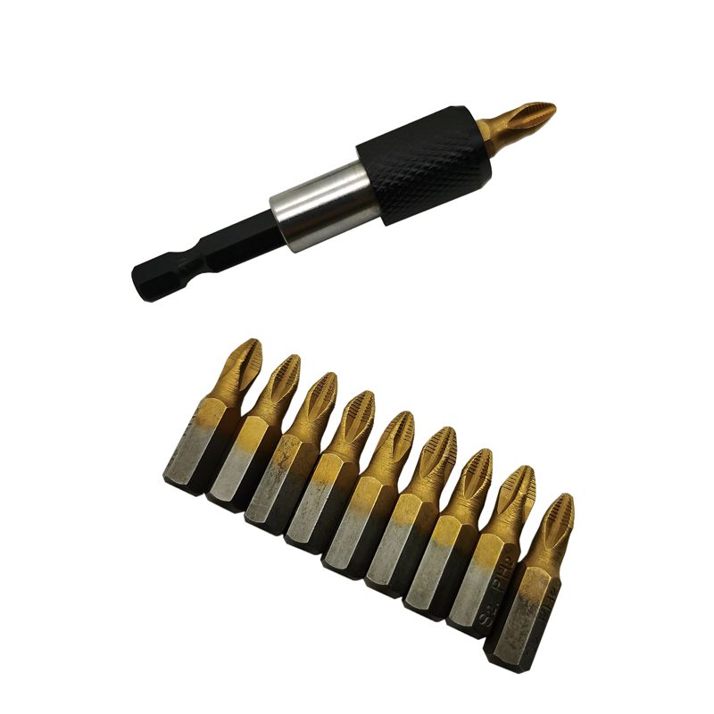 Krachtige 10pcs 25mm 1/4" Shank Anti Slip PH2 Titanium Coated Screwdriver Drill Bits + Quick Release Holder Extension Bar Professional