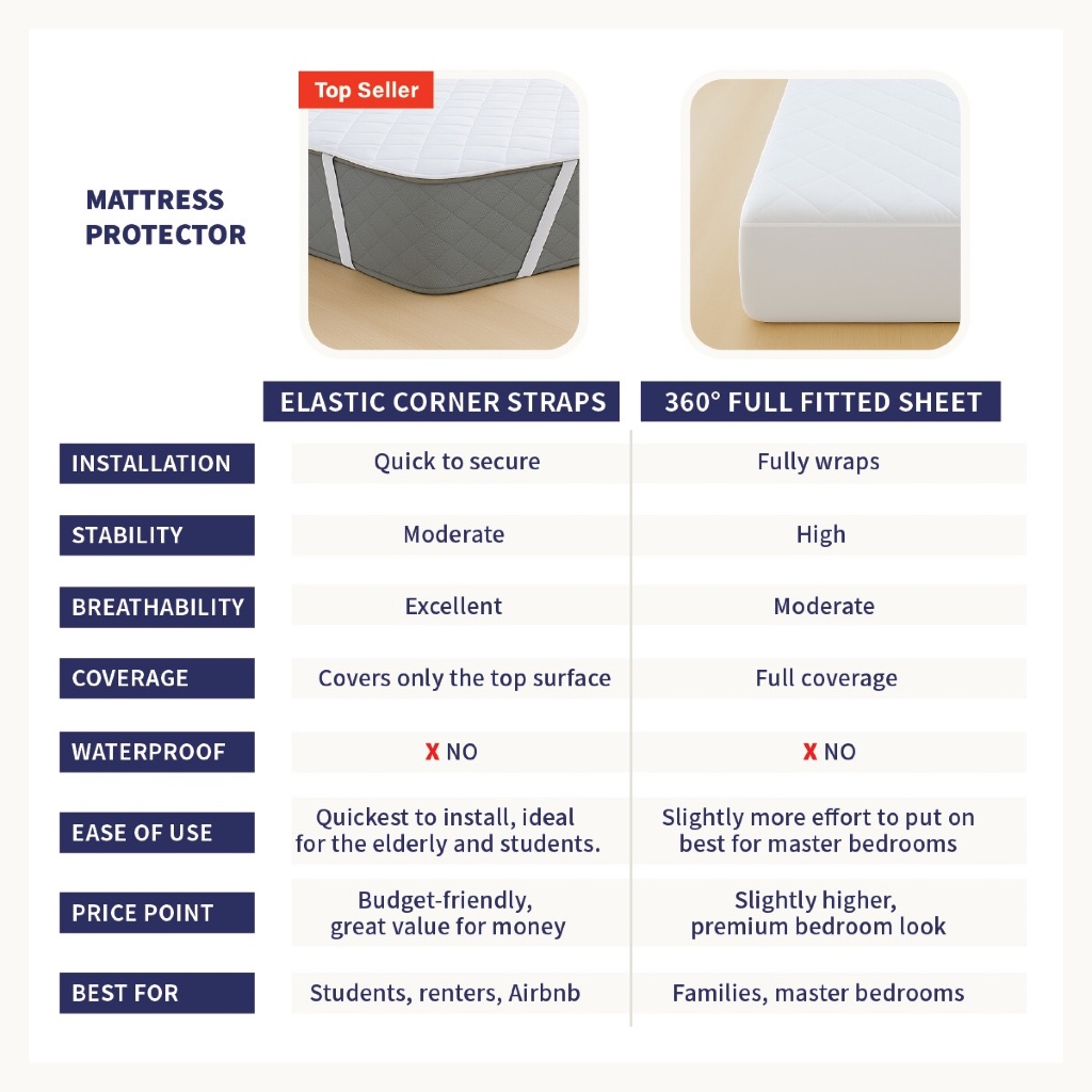 Kun Washable Mattress Protector A Layer Of Protection & Comfort (Elastic Band/Fitted)