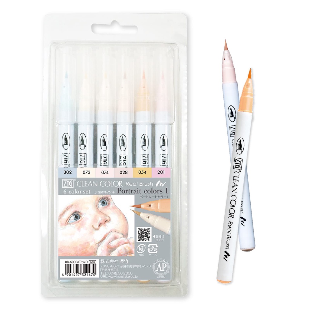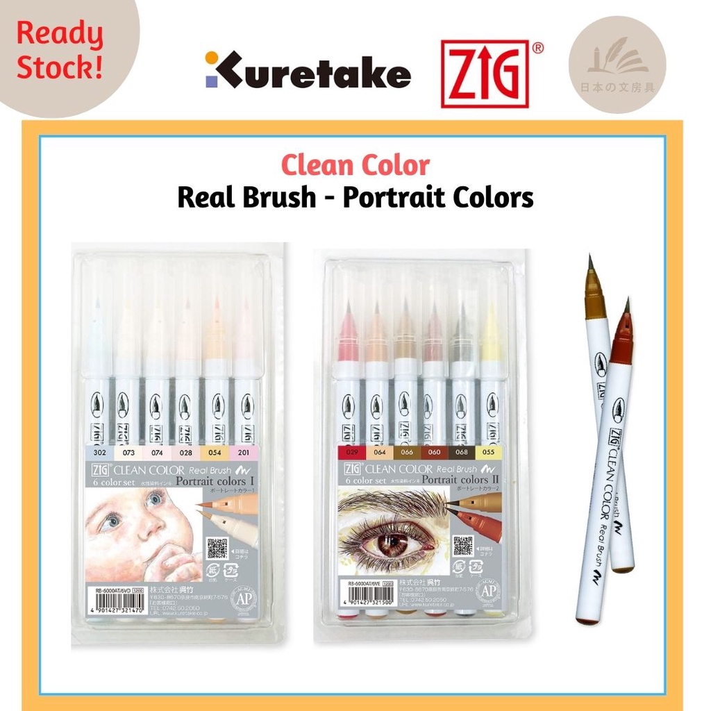 Kuretake ZIG Clean Color Real Brush Pen - Portrait Color Sets sets I /II (6pcs)