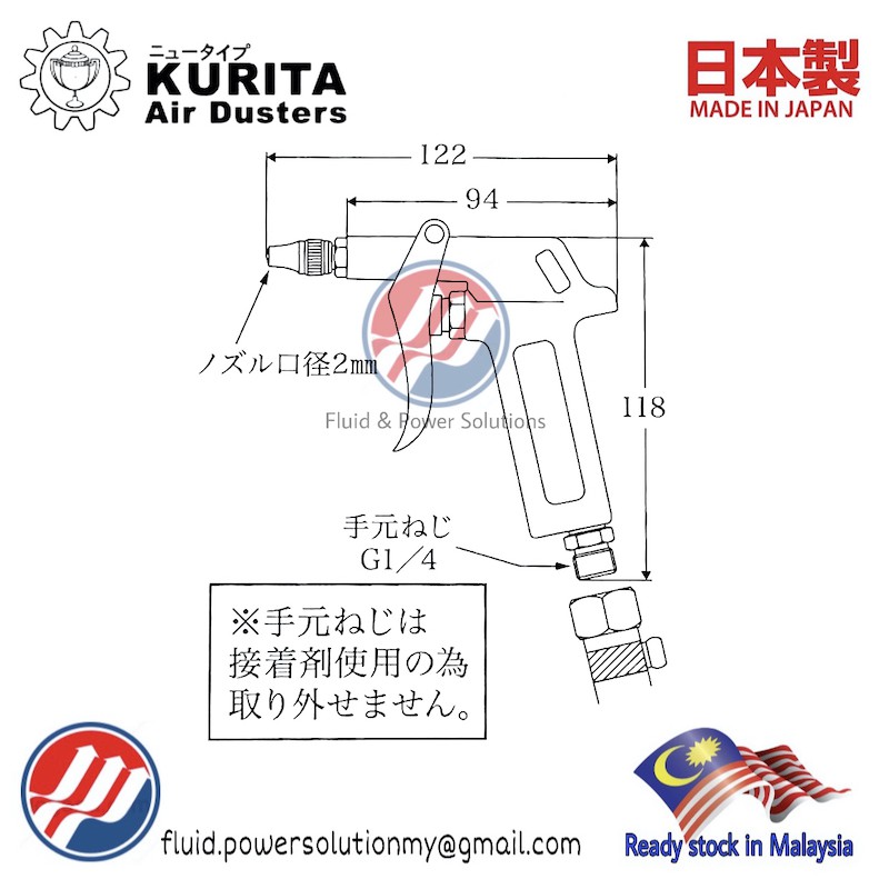 Kurita "Made in Japan" AG-50L Air Blow Gun , Aluminium Blow Dust Gun , Metal Type Duster Air Gun , Heavy Duty Air Gun .