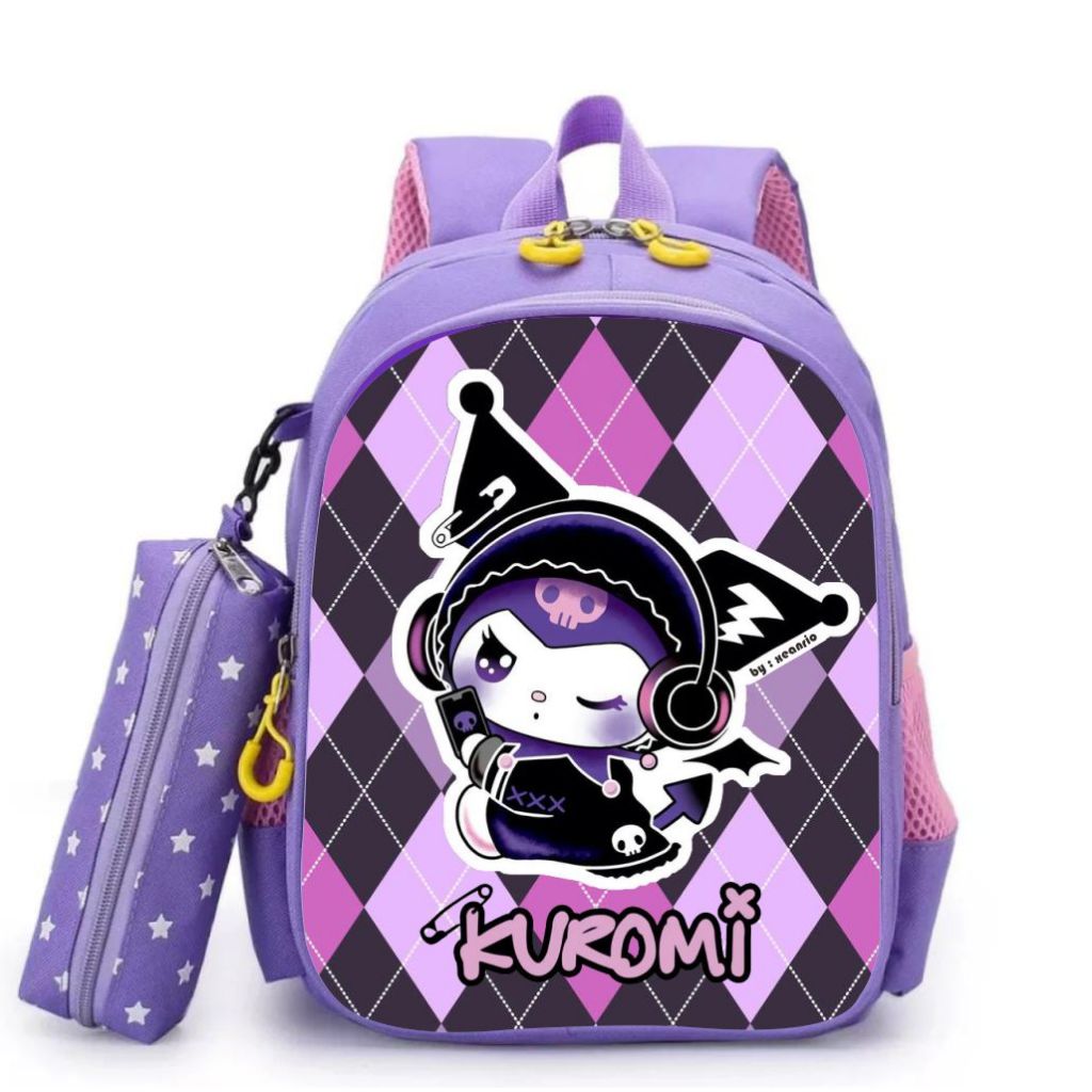 Kuromi CUTE Character Kindergarten and Elementary School Girls' School Backpack Premium Quality and Bonus Pencil Case