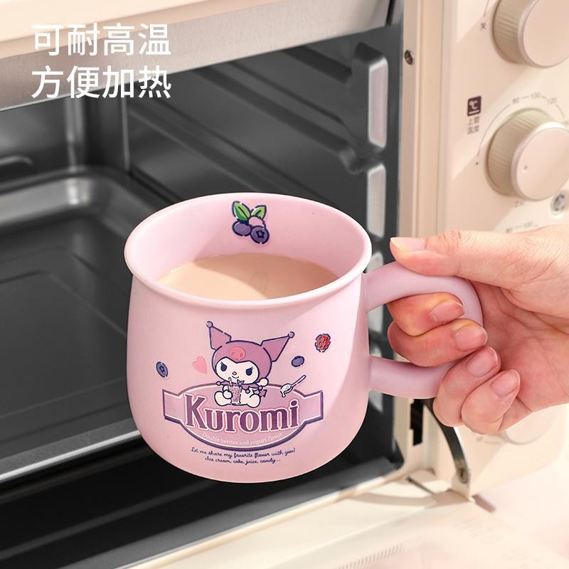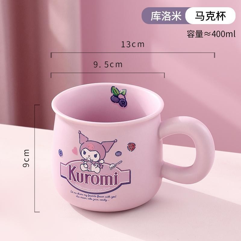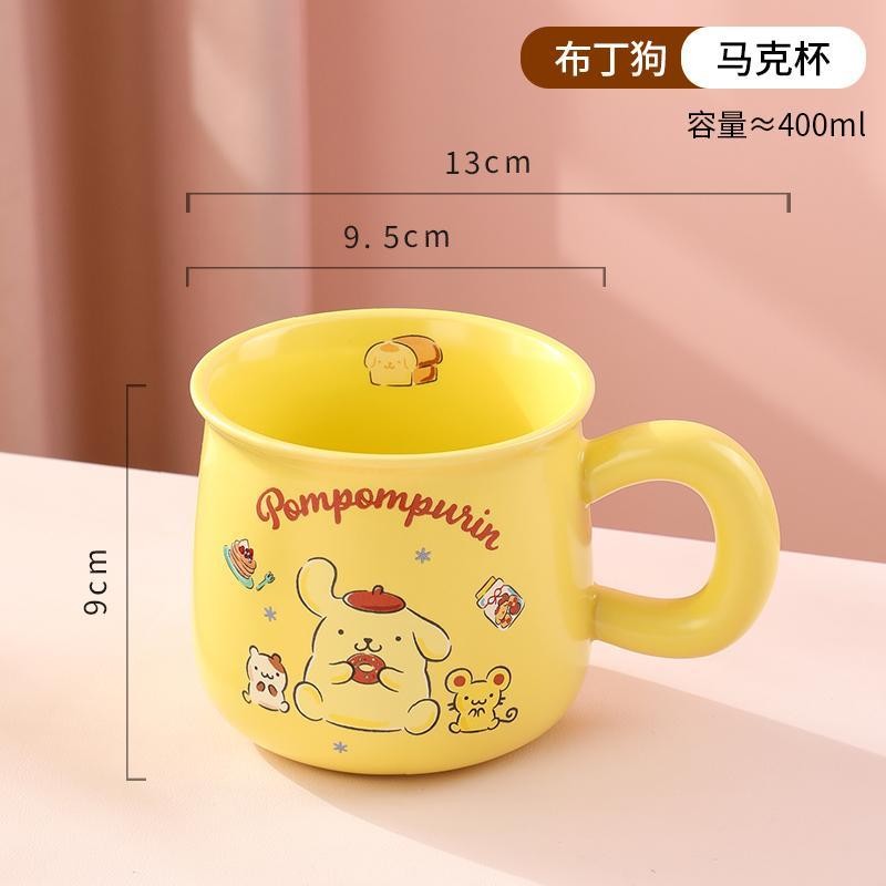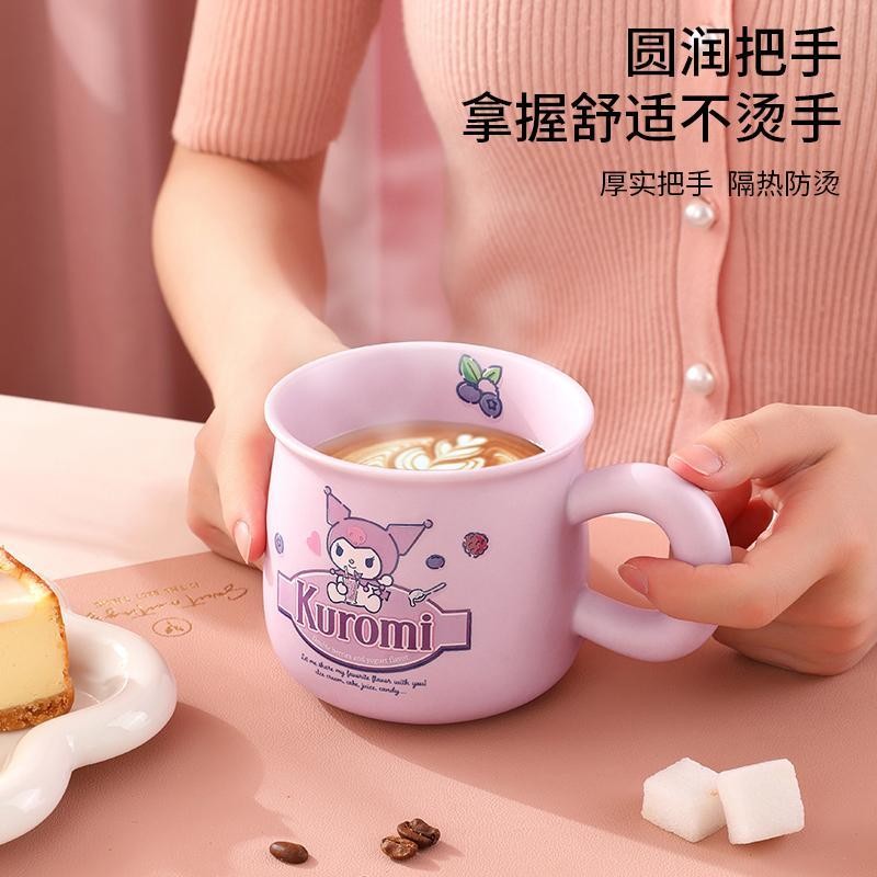 Kuromi Cinnamoroll Hello Kitty 400ml Mugs Cups with Lids Spoons PomPom Puri Tea Milk Coffee Cups