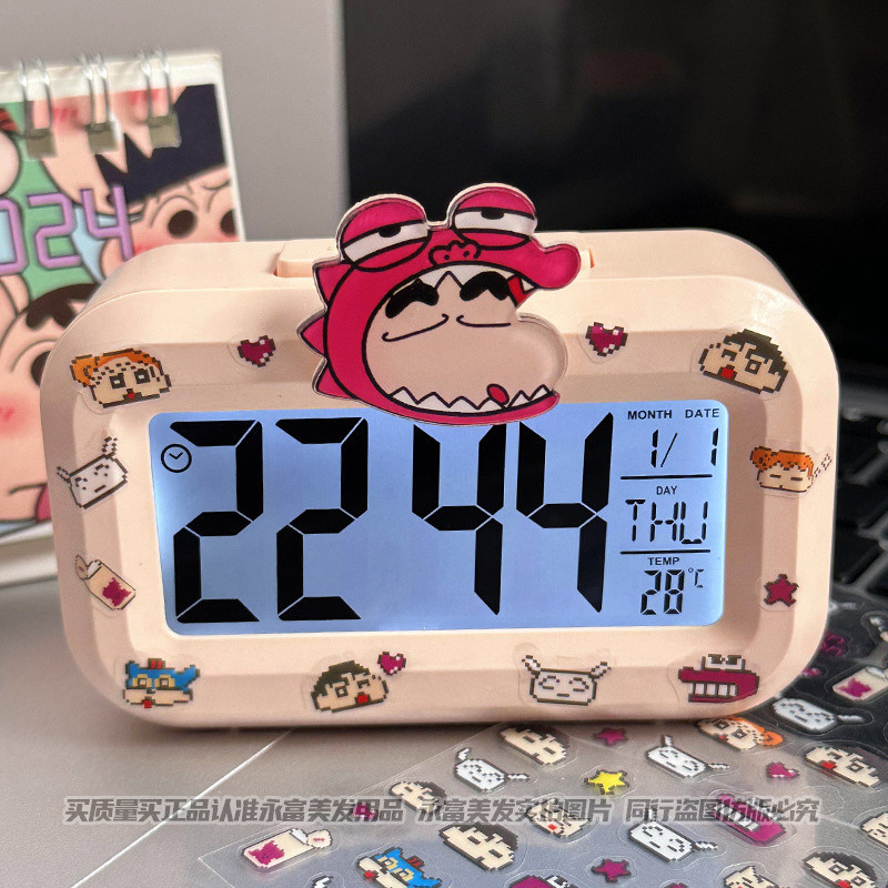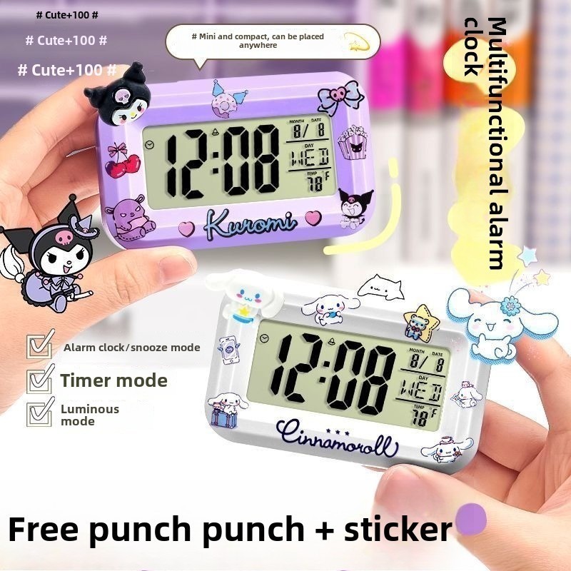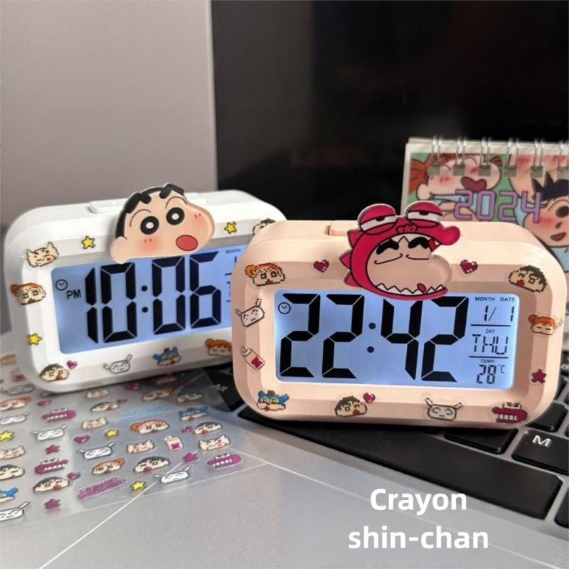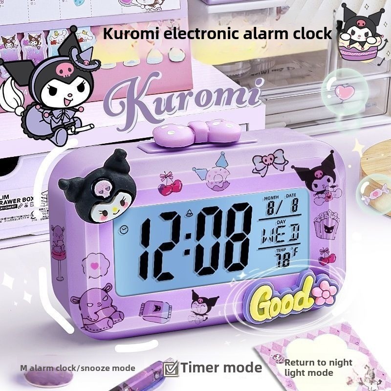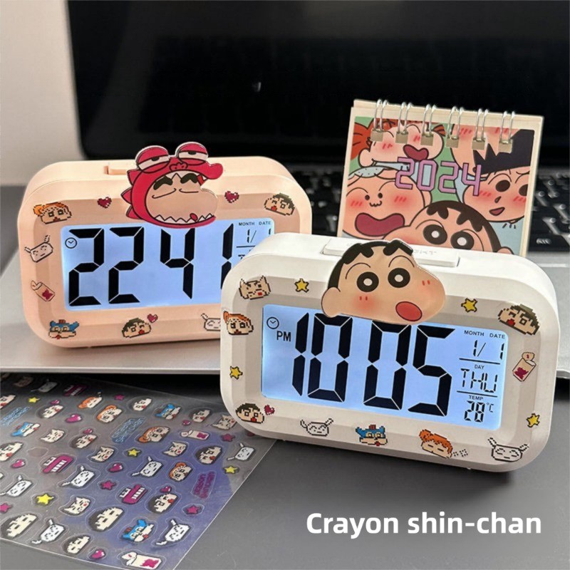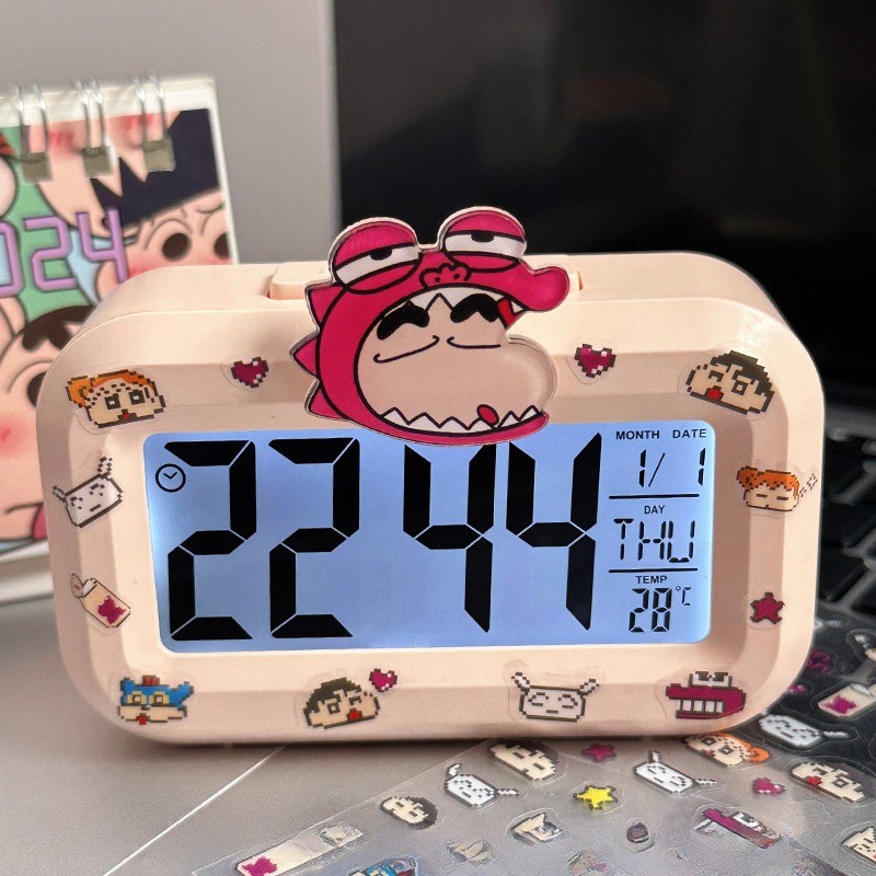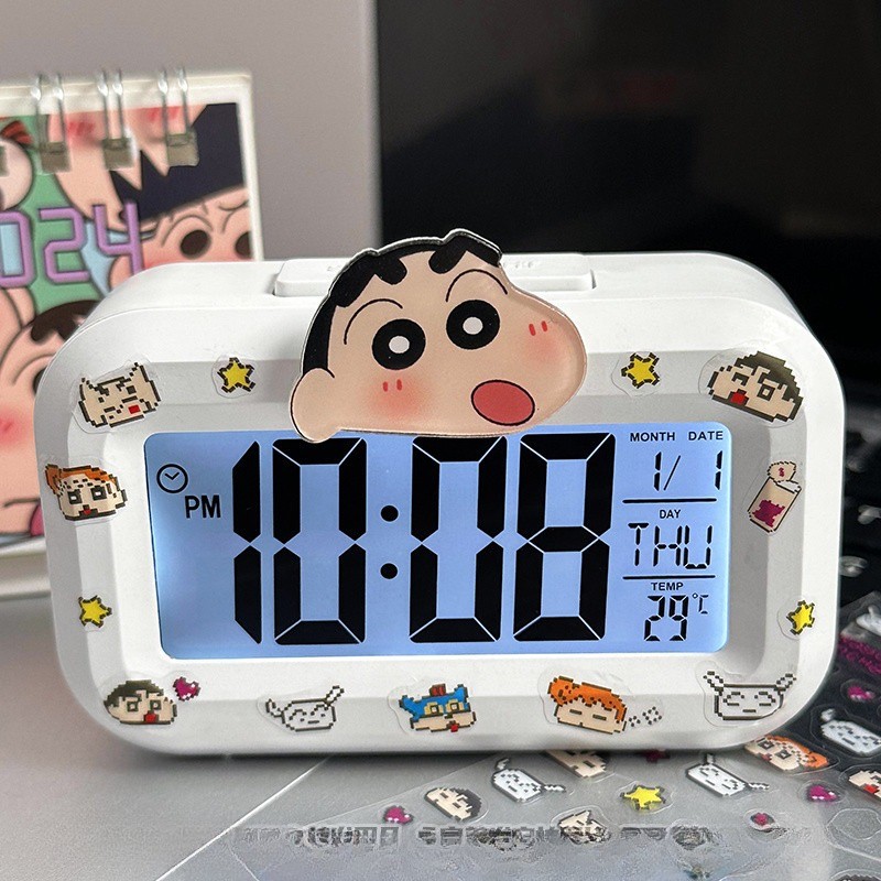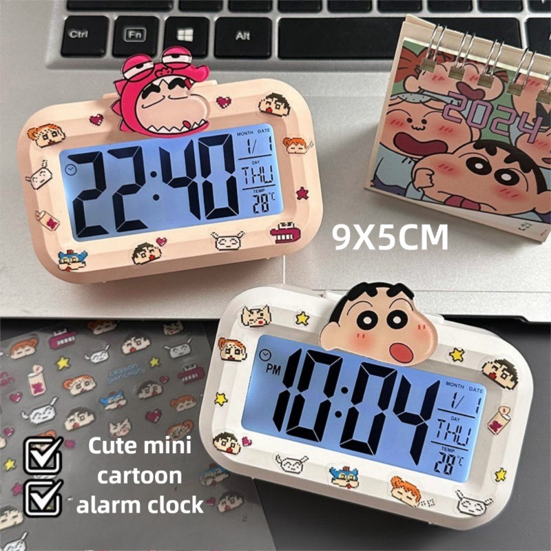 Kuromi Melody Crayon Shin-chan Kids Mini Alarm Clock | Cute LED Night Light Clock | Student Desk Digital Timer