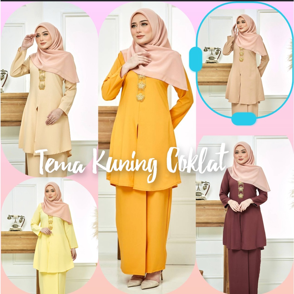 Kurung FILLEA Tema kuning Coklat gold mustard chestnut brown light yellow nude fd