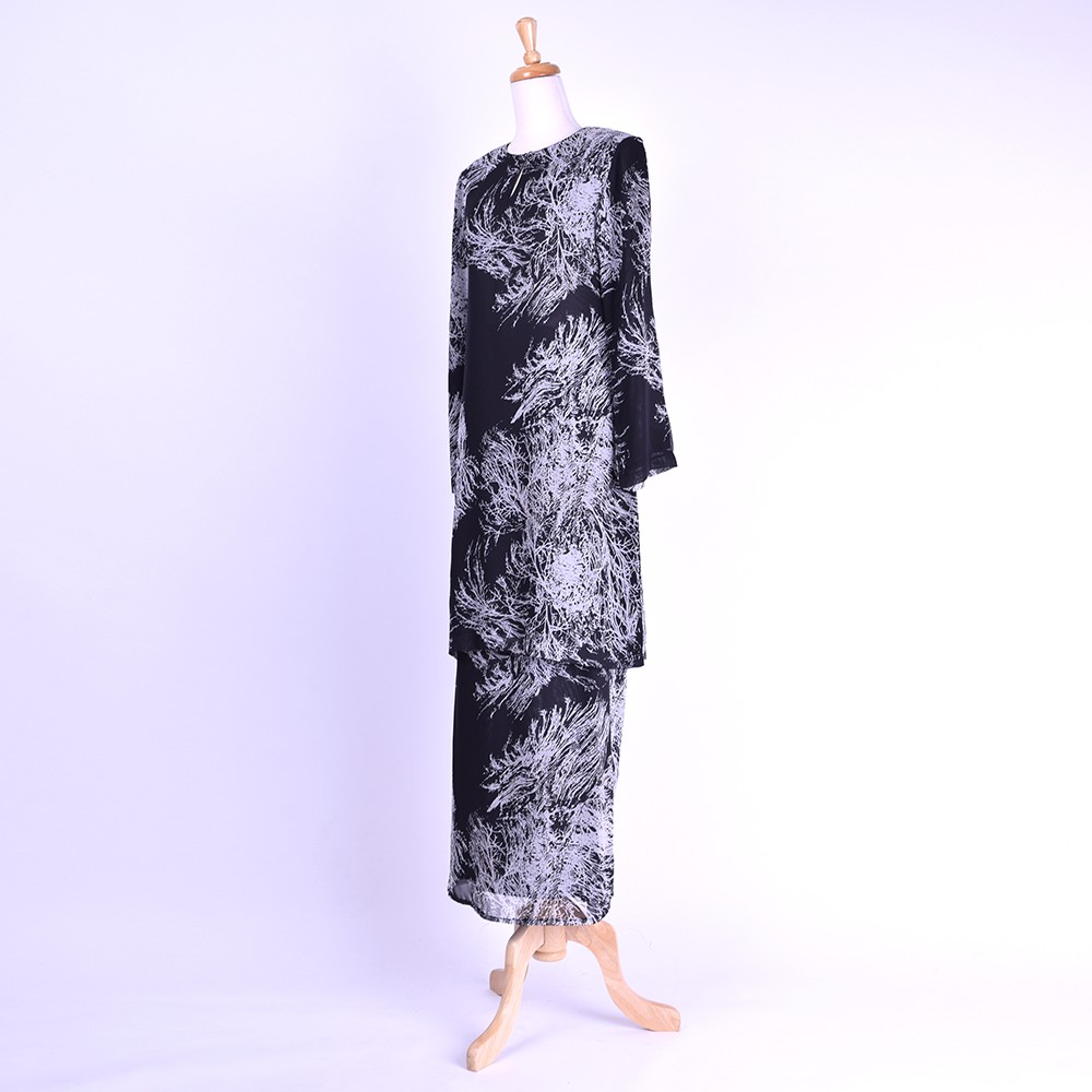 Kurung Moden Chiffon Corak Akar Black (XS - 3XL)